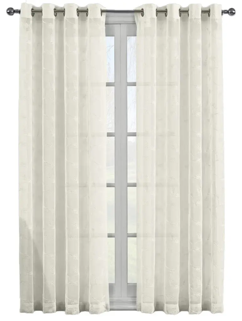Brook 2Pc Embroidered Grommet Sheer Panels, Beige, 108"x84"