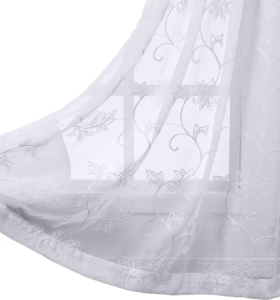 Update the look of any window or any room with our Brook Embroidered Grommet top sheer curtain set. This curtain set features full width 2 panels at 54 inches eachand modern all over embroidery with top grommet rings. Available in full range of lengths this window treatment will surely add freshness and update to any room. - Sold in Pairs- 100% Polyester Sheer- Full Panel width 54" inches- Grommet Top Rings to fit up to 1.5" rod Diameter - Allows Light in while keeping privacy - Royal Tradition Collection- Dry CleanAvailable Sizes- 108" Wide x 63" Long Pair (54" X 63" Each).- 108" Wide x 84" Long Pair (54" X 84" Each).- 108" Wide x 96" Long Pair (54" X 96" Each).- 108" Wide x 108" Long Pair (54" X 108" Each).