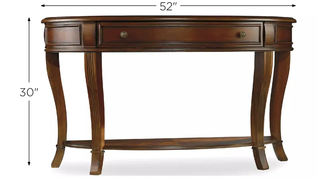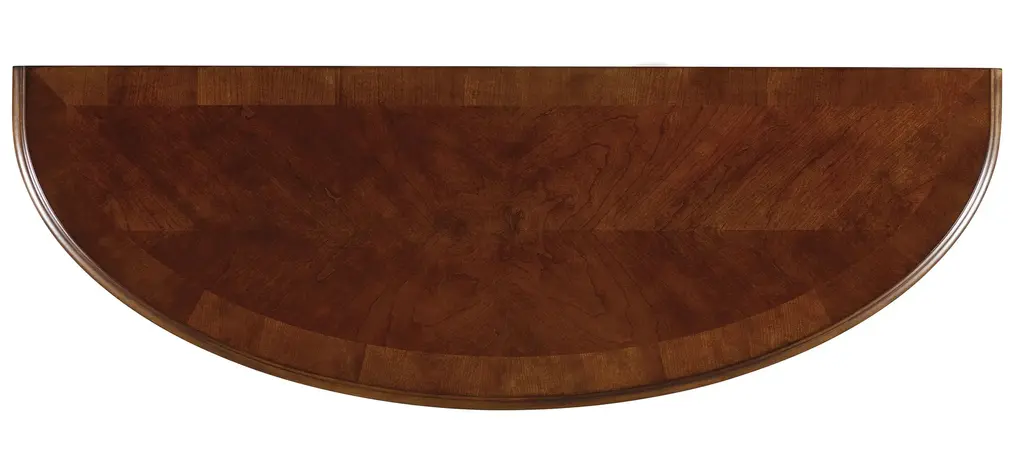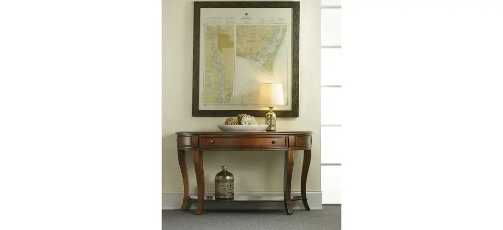 With graceful lines and soft curves, the Brookhaven console table projects a casual classic profile. Timeless design details give this console character, including a distressed medium clear cherry finish over Cherry Veneers, fluted cabriole legs and medallion-shaped traditional bronze-finished hardware. One drawer and one shelf.