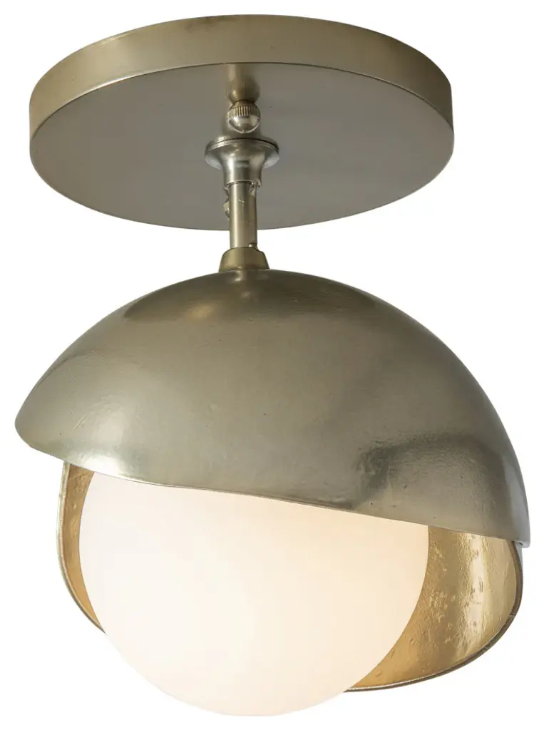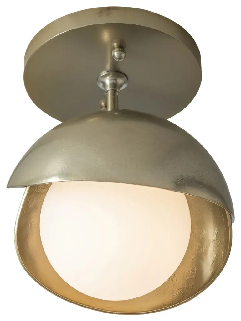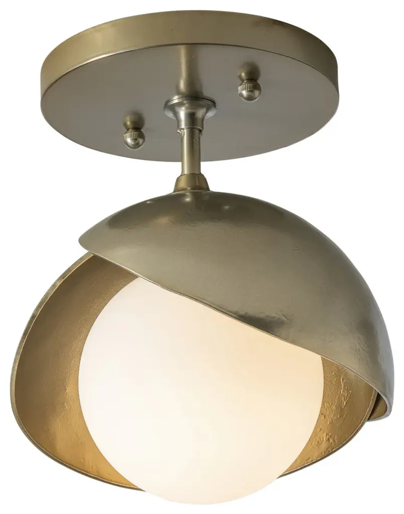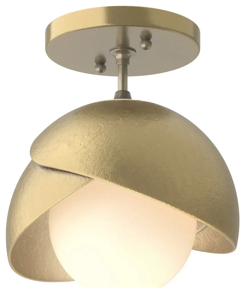 The Brooklyn Double Shade Semi-Flush brings a bit of whimsy to its space. Some see it as "botanical" with cupping leaves, others see it as a bit of a "wink", the Brooklyn lights up its space. With the option of a two-toned finish, with a choice of accent color for one of the forged and textured shades, this ceiling fixture offers functional yet stylish light. Available in all standard finishes.Bulbs Included: NoBulb Wattage: 60Type of Bulb: G-9 G9 IncandescentNumber of Bulbs: 1All Hubbardton Forge products are hand-crafted to last one at a time in Vermont and backed by a Lifetime Limited Warranty.