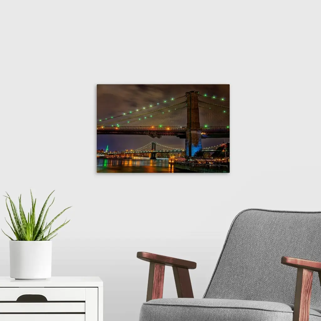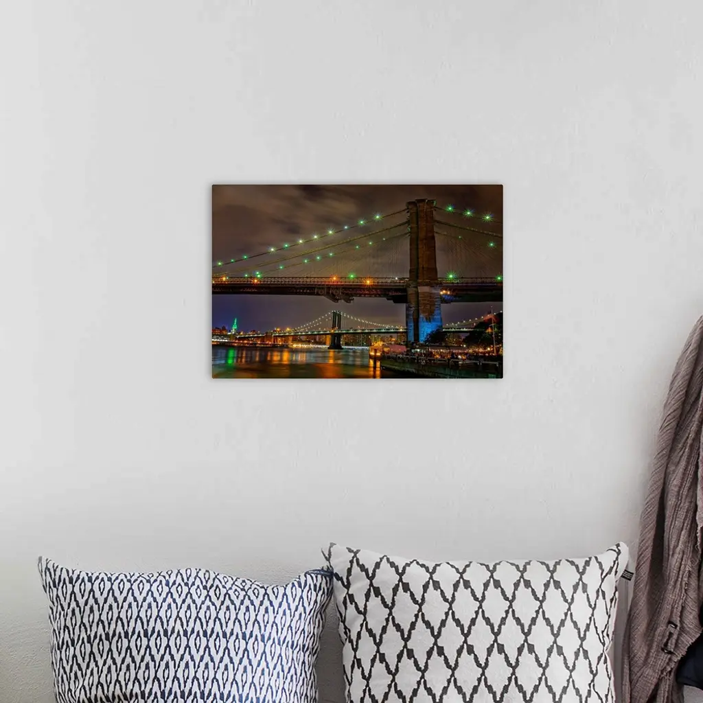 Brooklyn Bridge And Manhattan Bridge At Night wall art for home and office decor. Discover canvas art prints, photos, mural, big canvas art and framed wall art in GreatBigCanvas.com's varied collections.