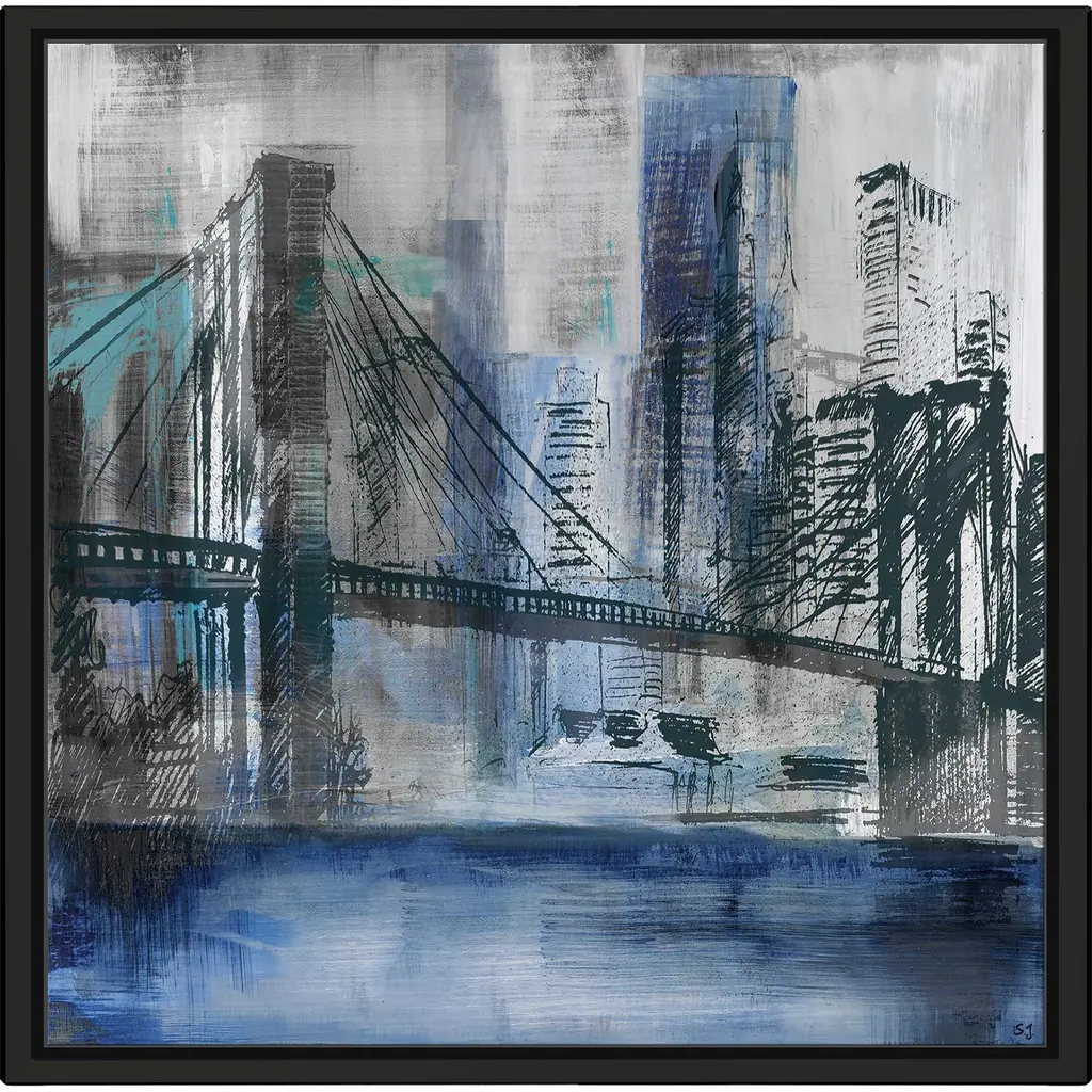 "Brooklyn Bridge" By Susan Jill Print On Canvas In Floating Frame - Blue - 31.5" X 31.5" X 2"