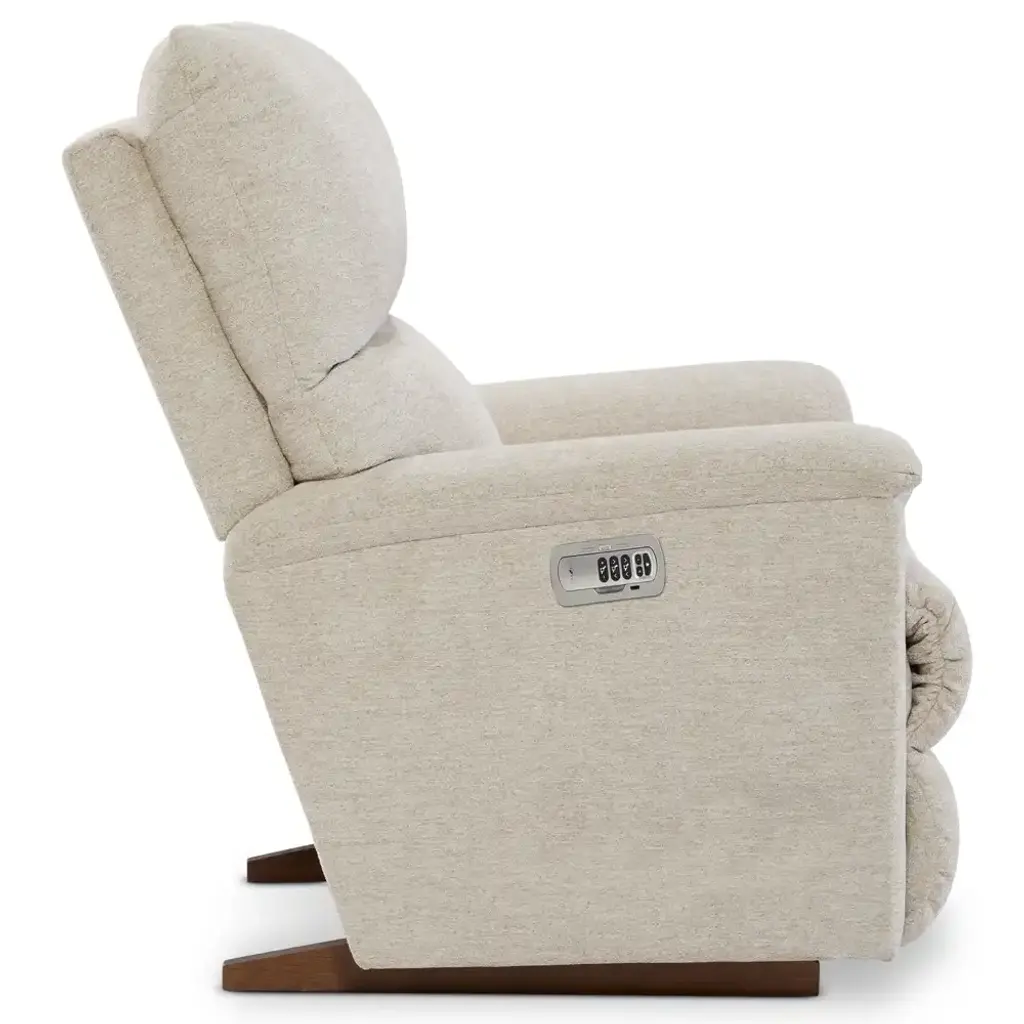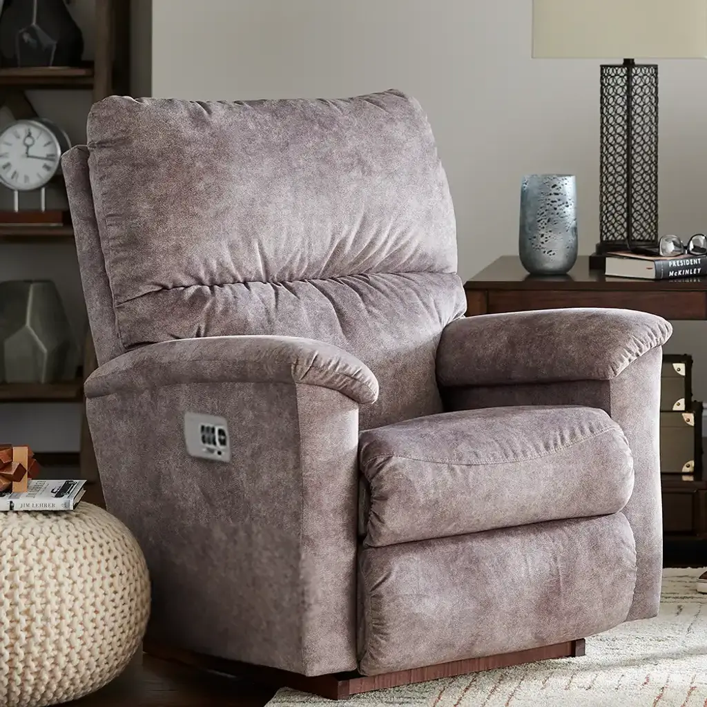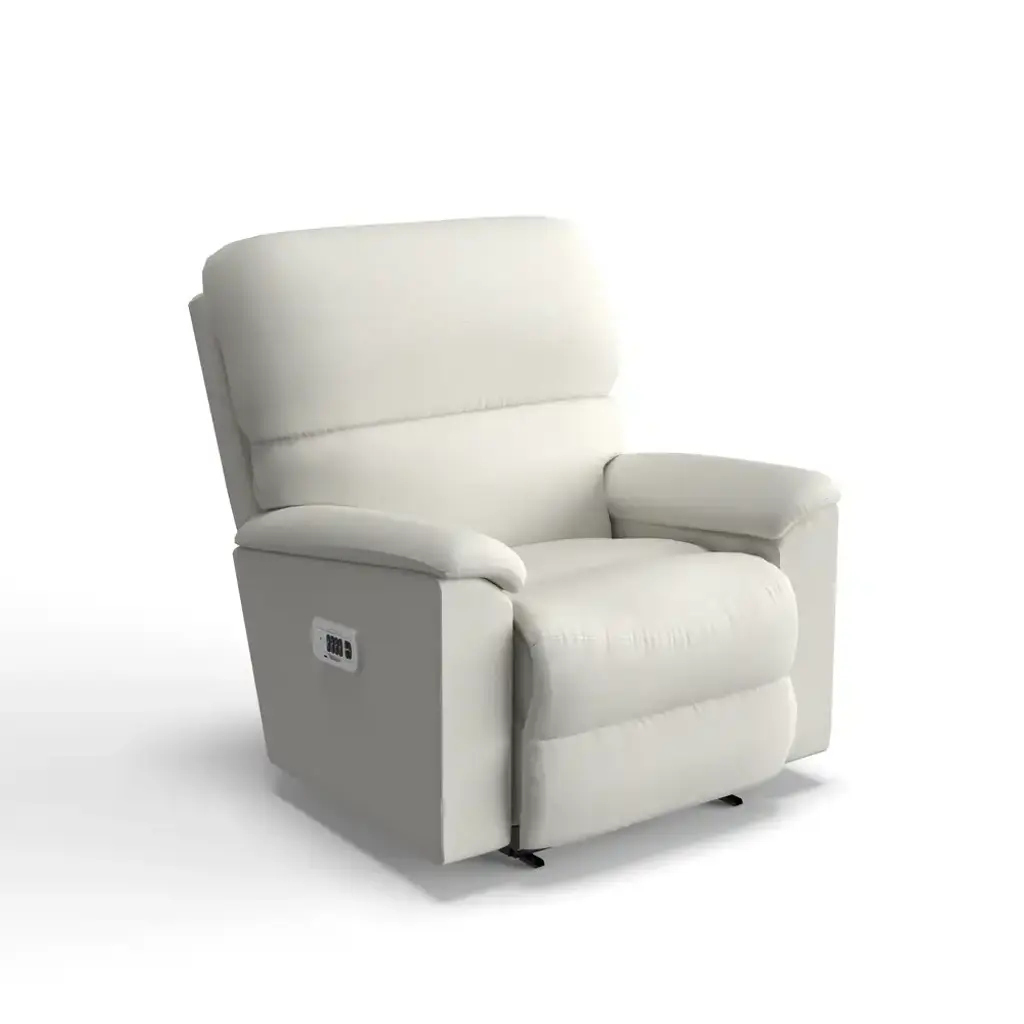 The Brooks Power Rocking Recliner w/ Headrest offers enormous comfort in a smaller size. The clean contours of the back and simple lines of the streamlined arms come together to create a refined look that will be the perfect fit for any room.