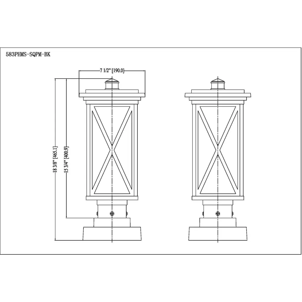 Brookside 1 Light 18.25 Inch Black Outdoor Pier Mounted Fixture