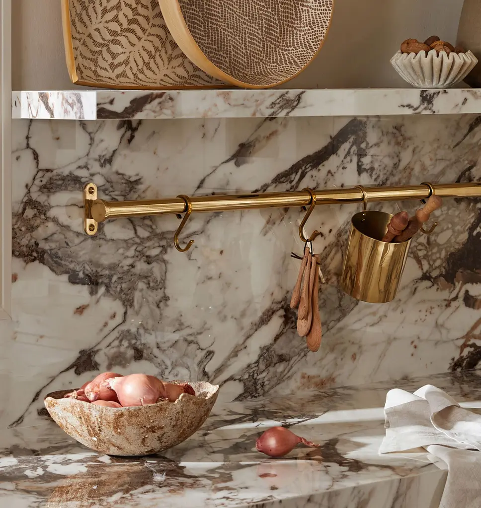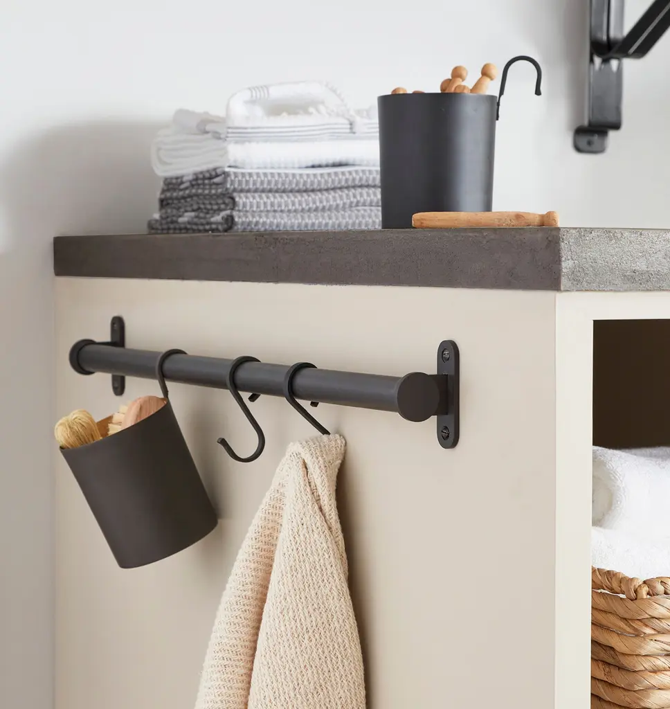 Designed with a customizable array of functional and versatile components, the Brookside Rail System is the perfect addition to any kitchen, pantry, garage, or workspace. Available in multiple lengths and crafted in sturdy brass, this organizational solution gets tools, cooking accessories, art supplies, and office necessities off the counter and within arm's reach.Fair Trade Certified products ensure fair and safe labor practices, improve livelihoods, and empower workers to invest in their communities. As a proud member of the Fair Trade USA™ network of brands, we pay a premium for every Fair Trade Certified product sold back to the worker committee to collectively invest their greatest needs.