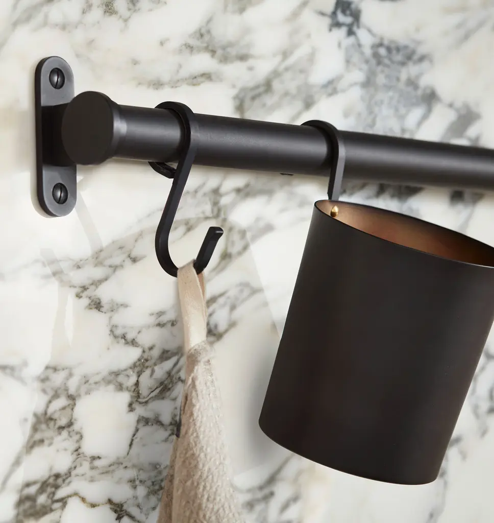 Designed with a customizable array of functional and versatile components, our Brookside Rail System is the perfect addition to any kitchen, pantry, garage, or workspace. Available in multiple lengths and crafted in sturdy brass, this organizational solution keeps tools, cooking accessories, art supplies, and office necessities off the counter and within arm's reach.