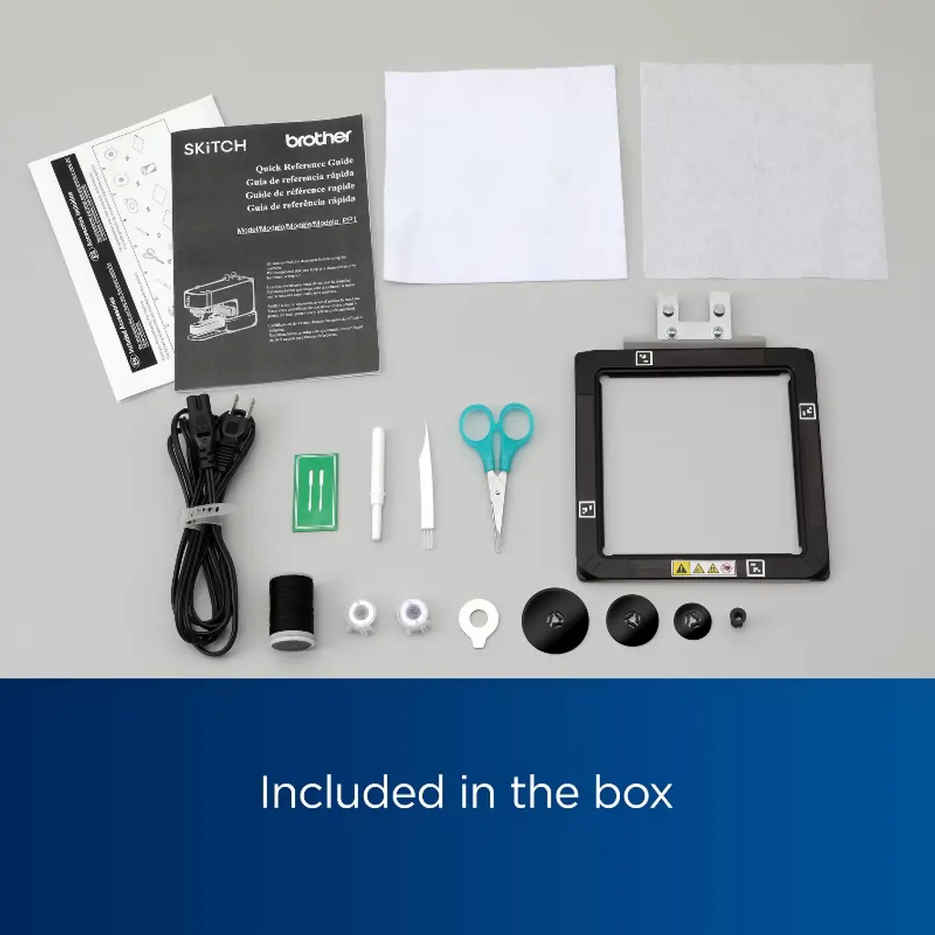 Embroidery for beginners! With Brother's Skitch Single-Needle Embroidery Machine, individual customization to almost any project is now within reach. With its industrial looks, modern design, and required connection with Artspira, the Skitch Single-Needle Embroidery Machine will inspire every project. With a 4" x 4" (100mm x 100mm) maximum embroidery area and with an embroidery speed of 400 SPM, adding a personal touch to projects is fast and easy. The Skitch Single-Needle Embroidery Machine will look great in your house, hobby room, or any space that sparks your creativity. Artspira is required to use the machine. You can use Artspira Basic which allows you to transfer designs from the app to the machine, use the embroidery drawing tool and browse projects, or access Artspira+ which allows you to import designs, digitize, cross stitch, browse projects and use advanced drawing tools.