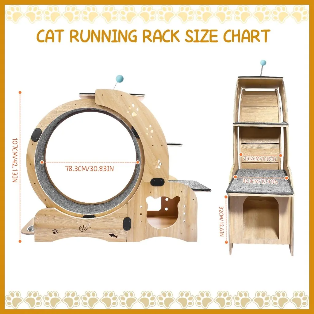 Introducing our upgraded Cat Wheels, designed to enhance your feline friend's indoor lifestyle with ease and enjoyment. Easily install the cat exercise wheel with detailed instructions and videos, transforming it into more than just a treadmill—it doubles as a cat house, shelf, and bowl, enriching your indoor cat's environment and activities.Keeping indoor cats active and healthy is simplified with our Cat Wheel Exerciser. Promoting a positive mindset, this wheel offers a sense of outdoor play and freedom without weather or time constraints, ensuring your cat's well-being and happiness.Featuring eight TPE silent pulleys for quiet rotation, the cat running wheel guarantees a smooth and stable exercise experience. Safety is paramount with the stable base design, allowing your cat to run and play without worry.
