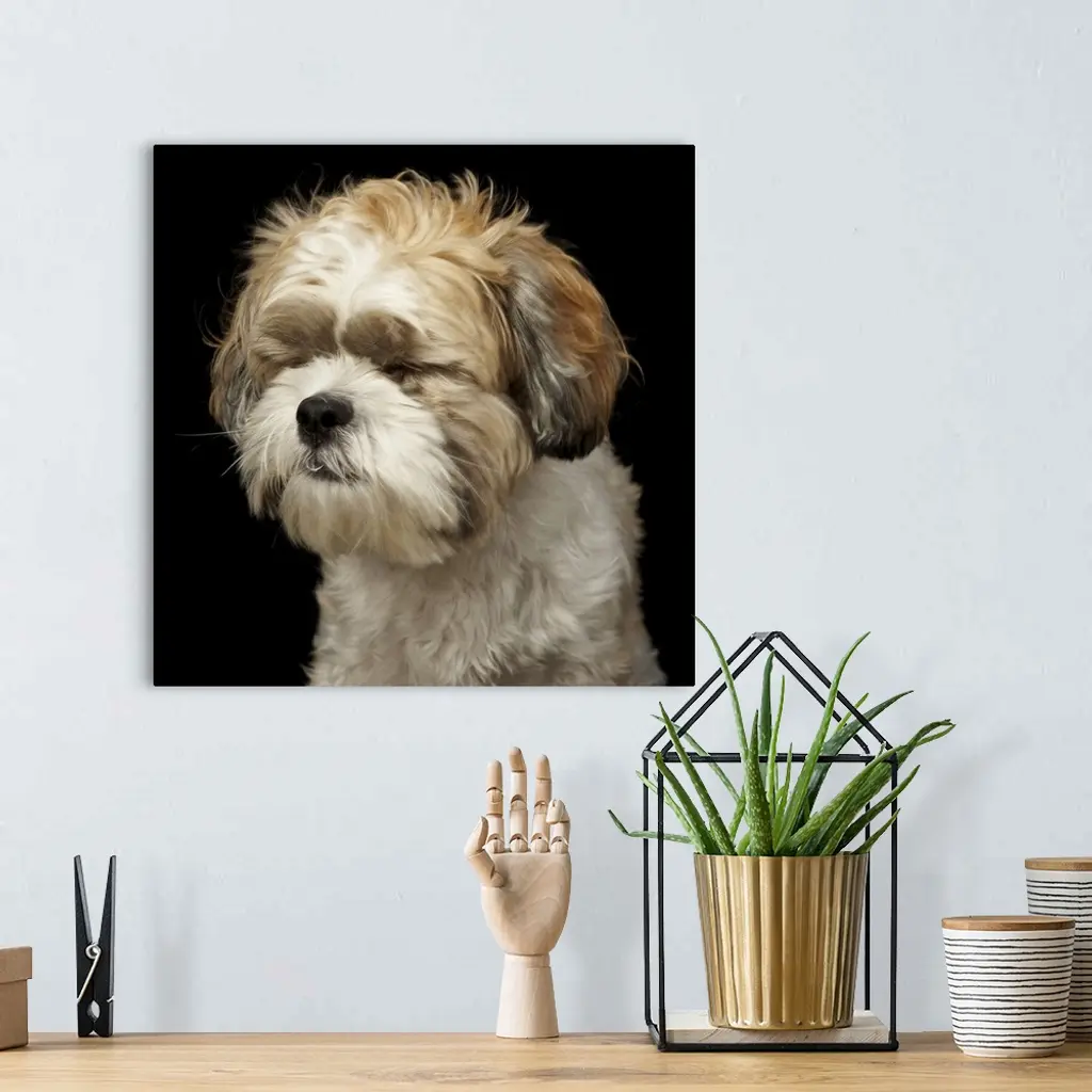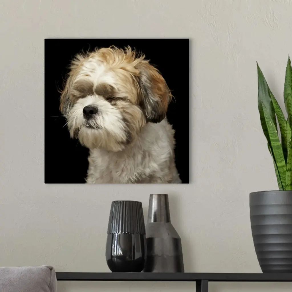 Brown and white shih tzu with eyes closed wall art for home and office decor. Discover canvas art prints, photos, mural, big canvas art and framed wall art in GreatBigCanvas.com's varied collections.