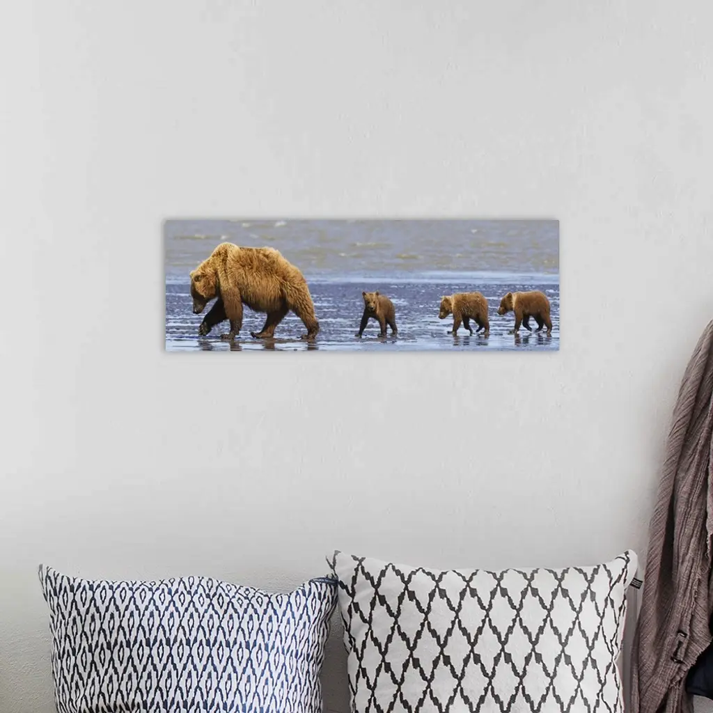 Brown Bear Sow And Her Three Cubs Walking On A Beach, Alaska wall art for home and office decor. Discover canvas art prints, photos, mural, big canvas art and framed wall art in GreatBigCanvas.com's varied collections.