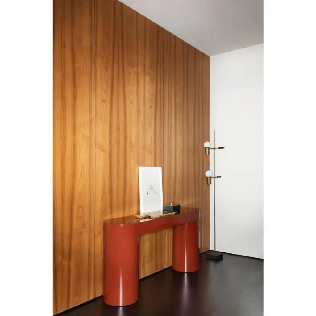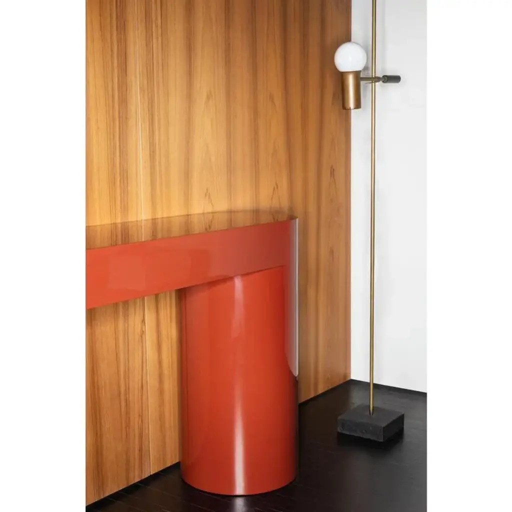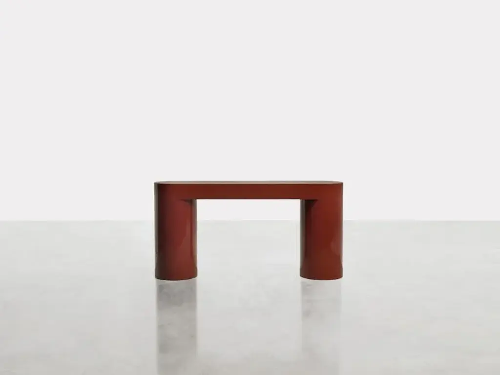 Brown red lazy-o console by somaschini dimensions: w 150 x d 35 x h 75 cm materials: lightened mdf monolithic structure. Console in n.118 brown-red lacquered high gloss finish