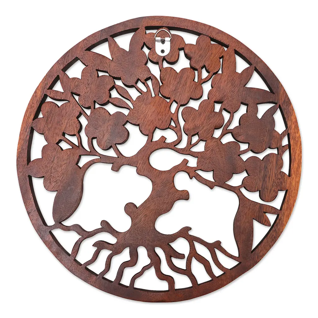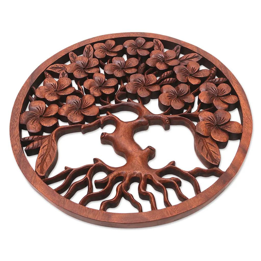 Trees are symbols of abundance, prosperity and abundance. Through the years, their sturdy structure has provided beauty to the world, protecting us from sun rays. As an homage to nature, Balinese artisan Wayan Nuliati hand-carves this relief panel from suar wood, depicting a leafy tree with blooms all over the design.