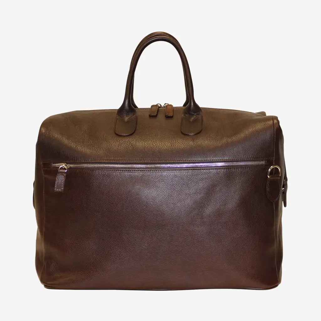 Elegant, sturdy, and utterly efficient, this bag will make a superior travel companion. Filled with pockets, its timeless character lies between modernity and traditional flair. Handmade of vegetable-tanned leather, its zipped shape is internally upholstered and can be completed with an optional and adjustable shoulder strap. Please inquire with the Concierge for customization options.