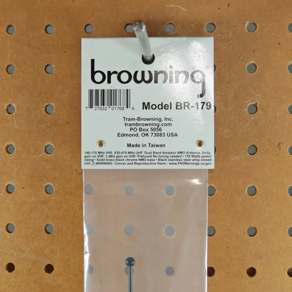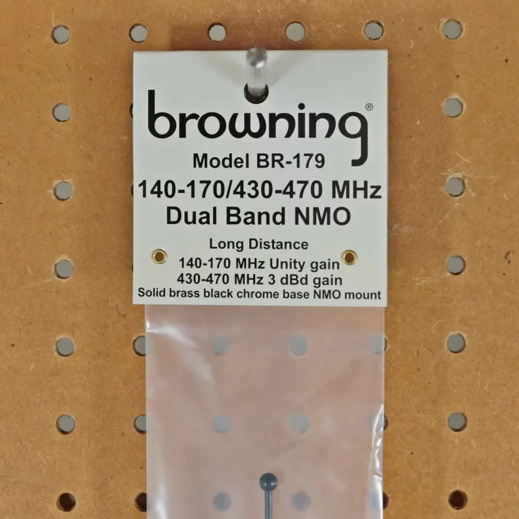 Tram Browning proudly presents the Browning BR-179. The BR-179 is a 140 to 170 MHz VHF/430 to 470 MHz UHF Pre-Tuned Dual Band NMO Antenna. This allows the antenna to send and receive radio frequency signals at 2 distinct frequencies. In addition, the BR-179 does not require tuning, has a closed coil for low wind noise, and is an aesthetically pleasing black stainless steel whip. This model has been carefully planned and developed to ensure great transmission over many uses. When you use the BR-179, you will understand why Tram Browning has been the trusted name in the antenna industry since 1988.