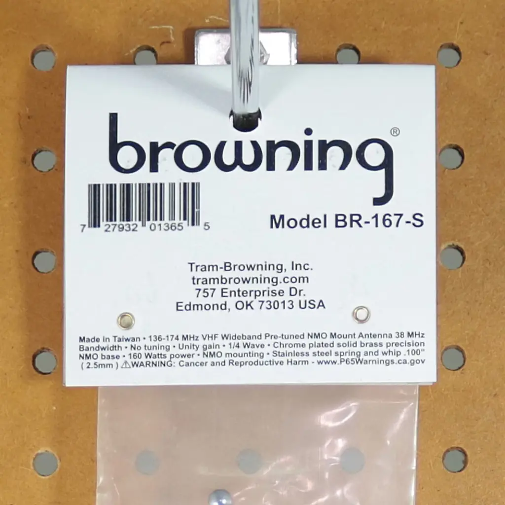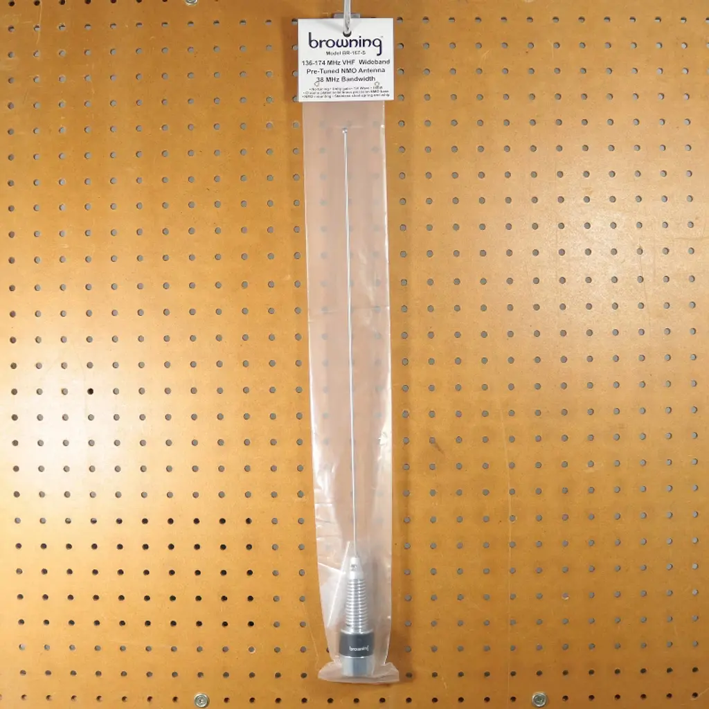 Choose Browning for your next antenna installation project and stay connected with this Silver, 160-Watt 136 MHz to 174 MHz Unity-Gain Antenna with NMO Mounting! Total height is 20 inches including its tapered stainless steel whip. Mount sold separately.