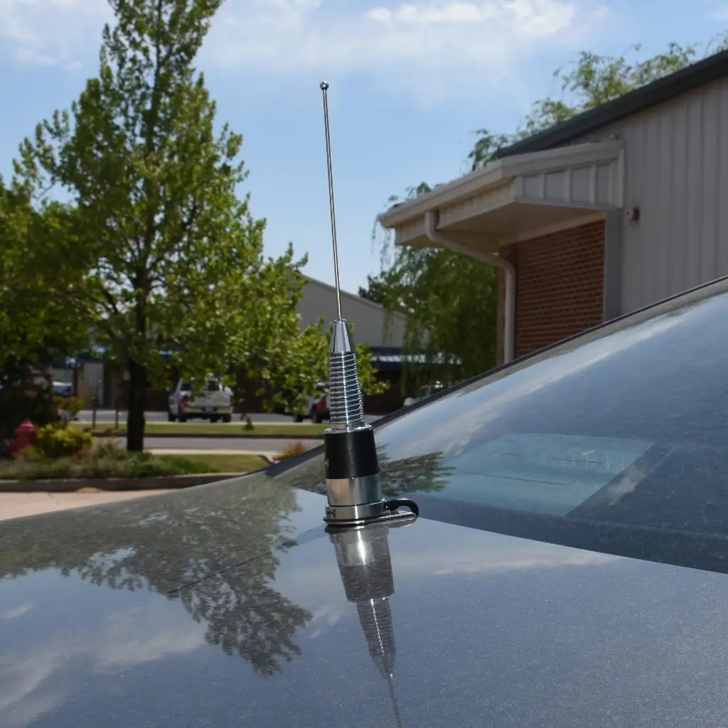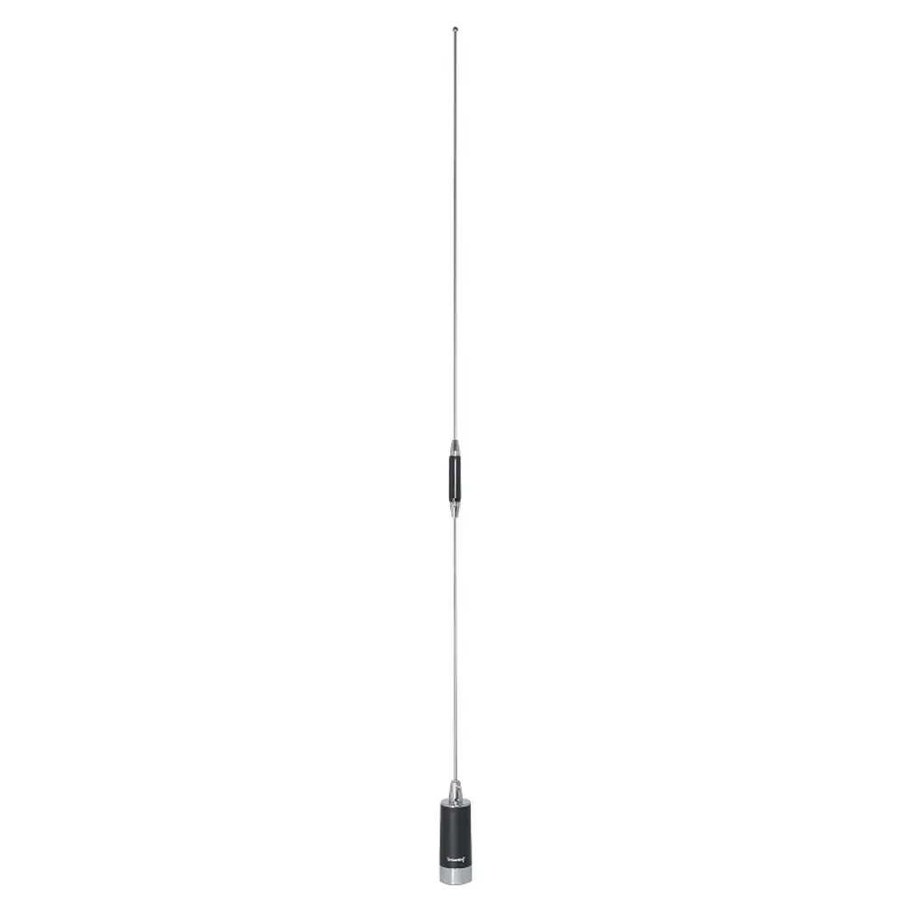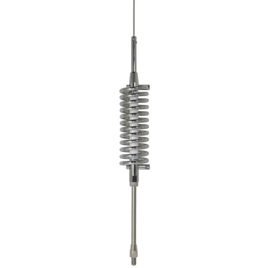 Amplify your signal with Browning. The 200 Watt 450 MHz to 470 MHz 3-dBd-Gain UHF Antenna with Spring and NMO Mounting features a 5/8 wave and a 13 in. high stainless steel tapered whip. It also has a gold plunger-type contact pin and a premium coil with metal base and top.
