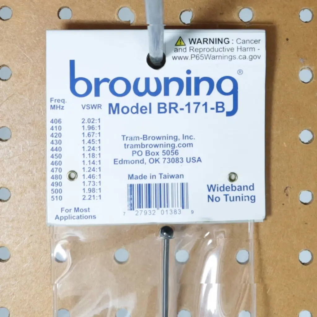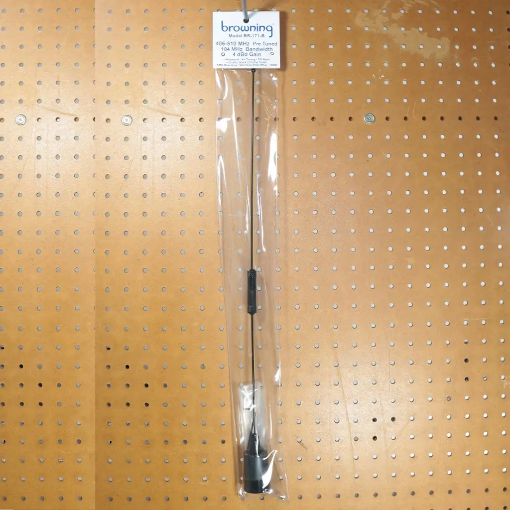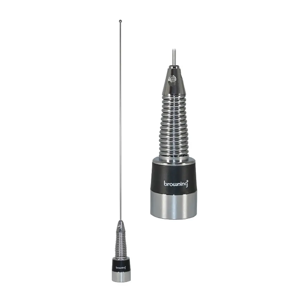 The Browning® BR-171-B antenna is designed with impressive features to enhance your communication experience. This 22-in. tall antenna offers a robust 4-dBd gain and operates as a 7/8 wave, ensuring wideband performance with a remarkable 104 MHz bandwidth. You won’t have to worry about tuning, making it user-friendly right from the start. The antenna boasts a heavy-duty solid brass top, finished in sleek black chrome, paired with a durable black stainless steel whip. For optimal connectivity, it includes a gold-plated plunger-type contact pin and utilizes NMO mounting, though please note that the mount is sold separately. In terms of performance, this antenna can handle a power rating of up to 160 watts. You can expect excellent SWR (Standing Wave Ratio) values across various frequencies, with measurements under 2.02:1 at 406 MHz, 1.45:1 at 430 MHz, 1.18:1 at 450 MHz, 1.24:1 at 470 MHz, and 2.21:1 at 510 MHz. With these capabilities, you can trust that you’re investing in a reliable and efficient antenna that meets your communication needs.