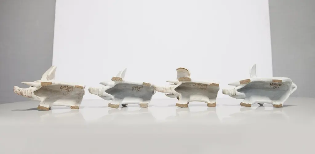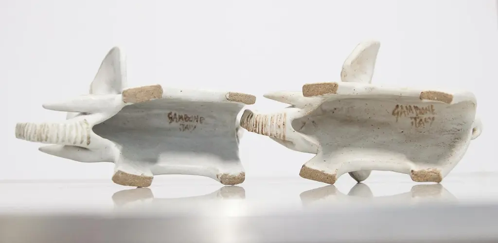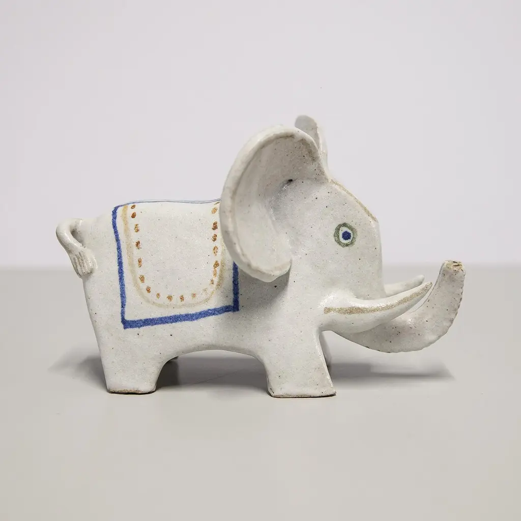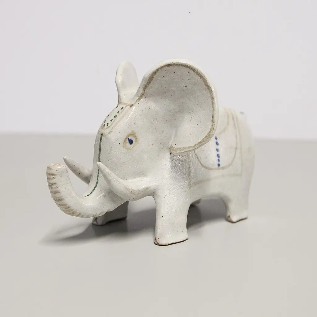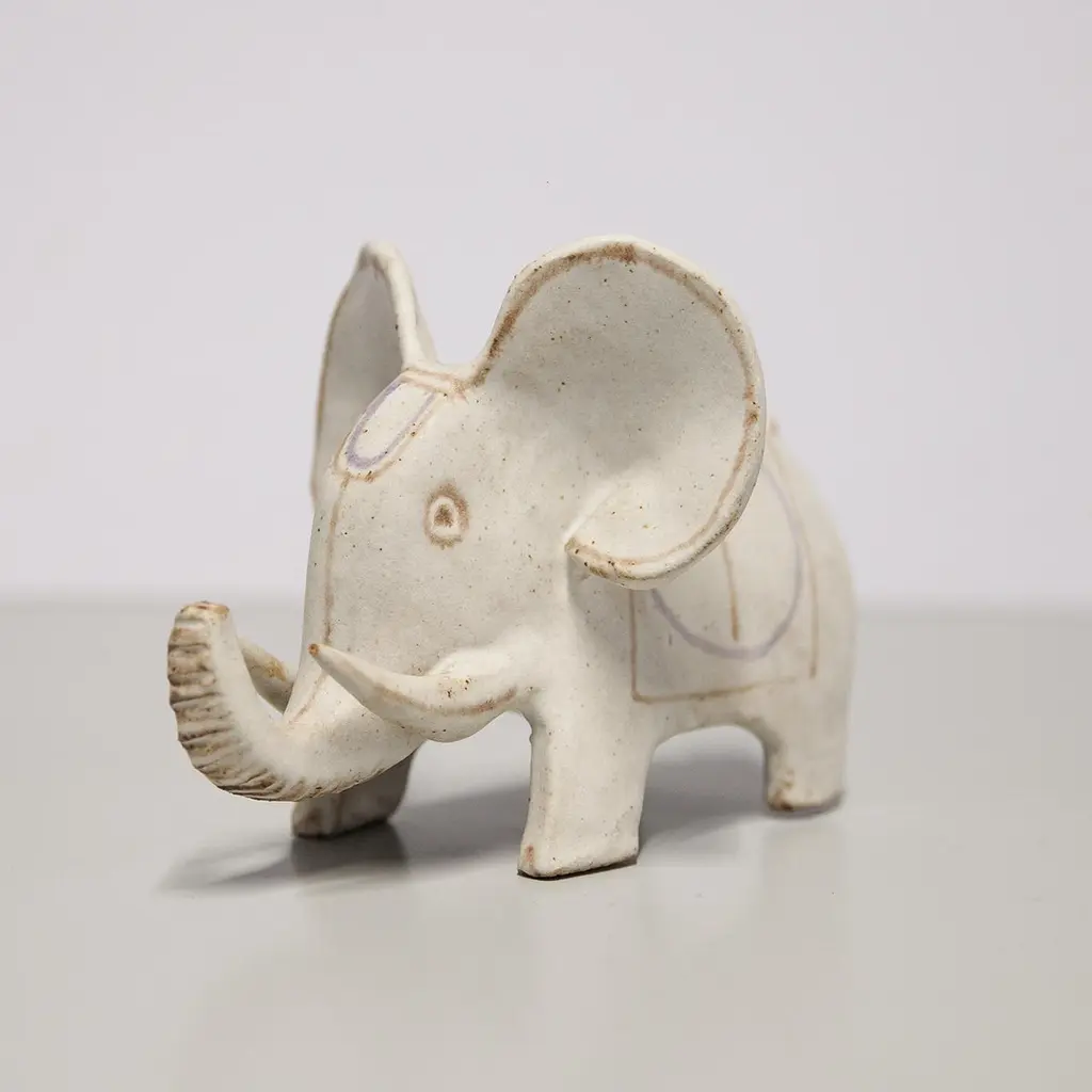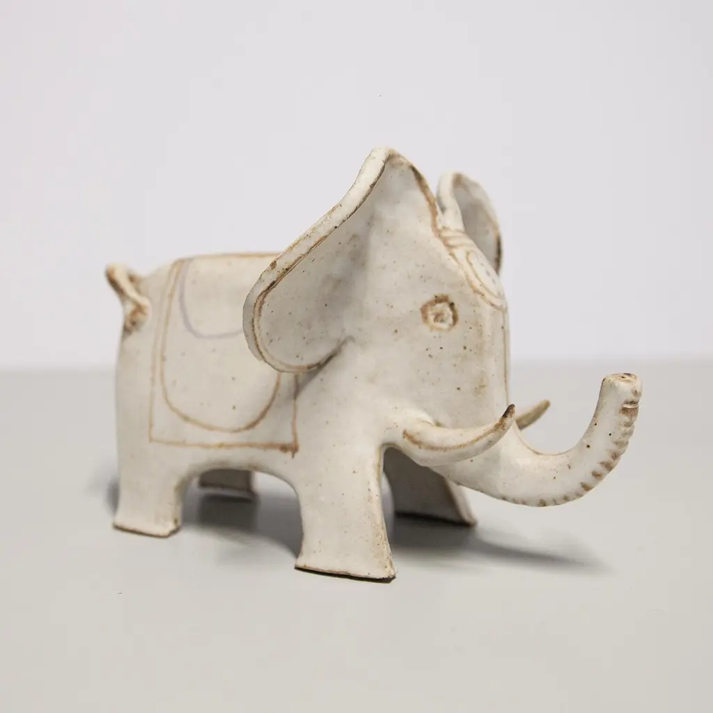 Cream white glazed ceramic Elephant made by Bruno Gambone in the 1970s, signed Gambone Italy on the bottom. Excellent vintage condition.Only three available, the right one on the first picture is sold.
