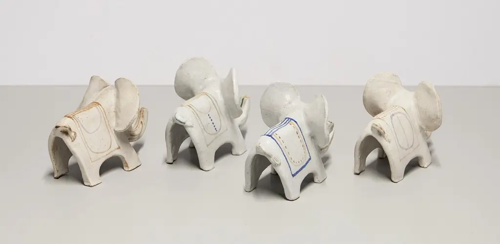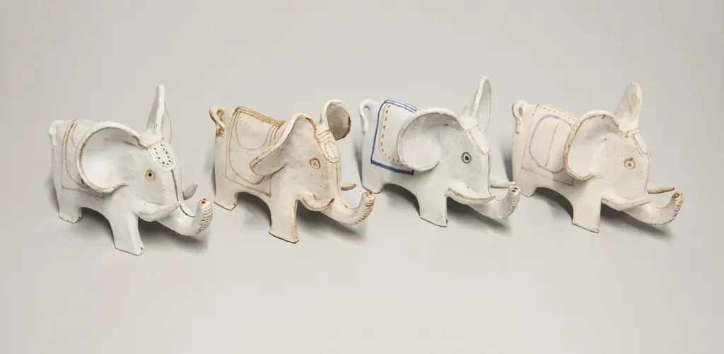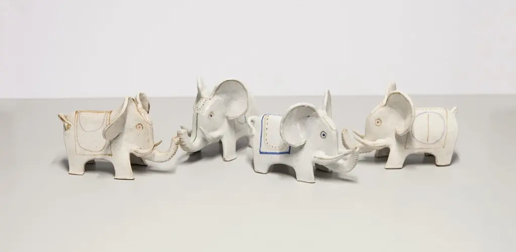 Bruno Gambone Stoneware Elephant Limited Edition 1975 Set Of 3