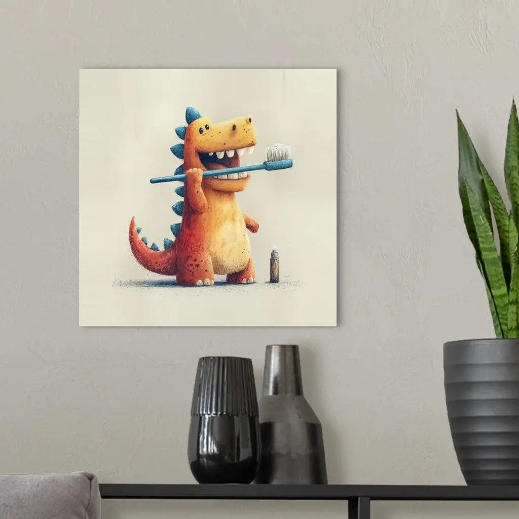 illustrated colored penicil drawing, pixar, simple, flat, fun colorful design for a theme. happy cartoon dinosaur brushing his teeth, clean vector illustration, pixar style --sref https://s.mj.run/jhzdDb7ZFMM https://s.mj.run/Z4OSXZ1zx0w --v 7 Job ID: c46b9dd2-f051-4532-a888-857fe24e17e0
