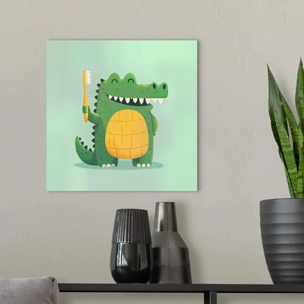 Brush Your Teeth Alligator wall art for home and office decor. Discover canvas art prints, photos, mural, big canvas art and framed wall art in GreatBigCanvas.com's varied collections.