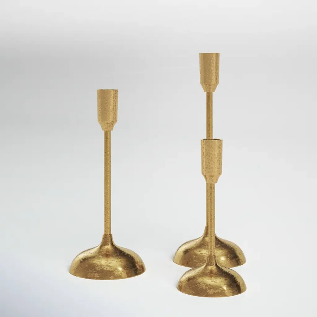 Complement contemporary interiors of any style and persuasion, with the eye-catching silhouettes of this gilded candlestick trio. Magnificent in a group, the sculptural presence of these taper holders is simply breathtaking. Offering up glam drama, this set comes in extending heights.