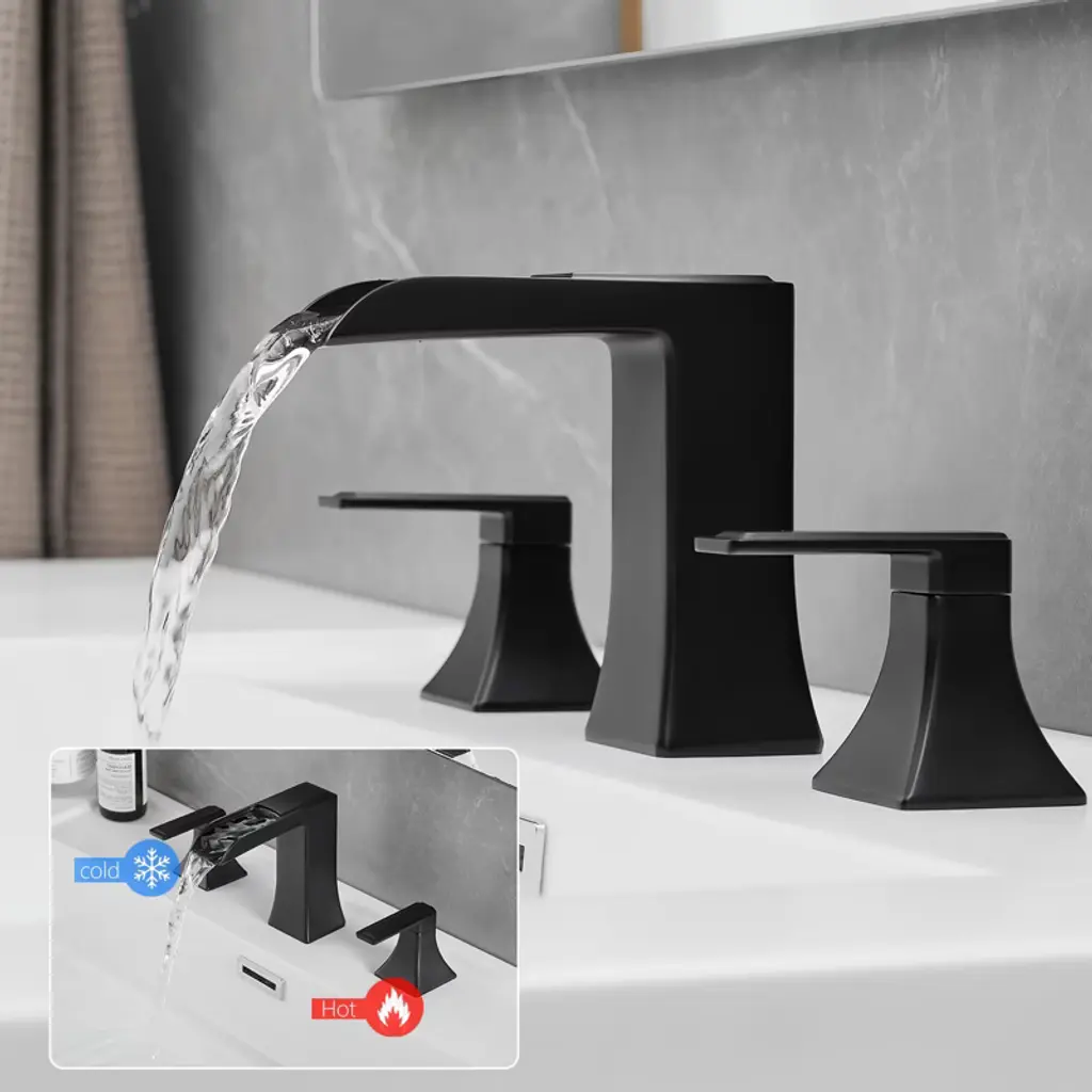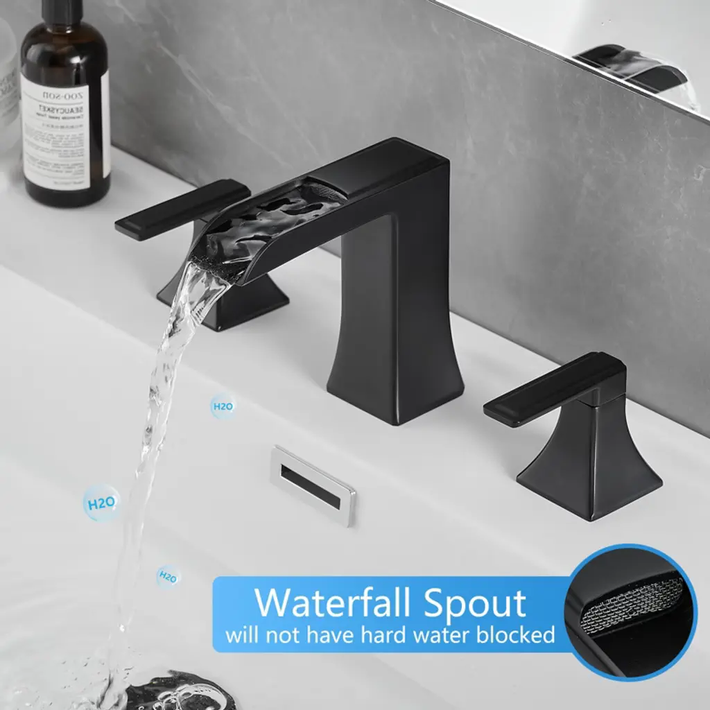 Modern brushed nickel single hole bathroom faucet with single handle operation.
