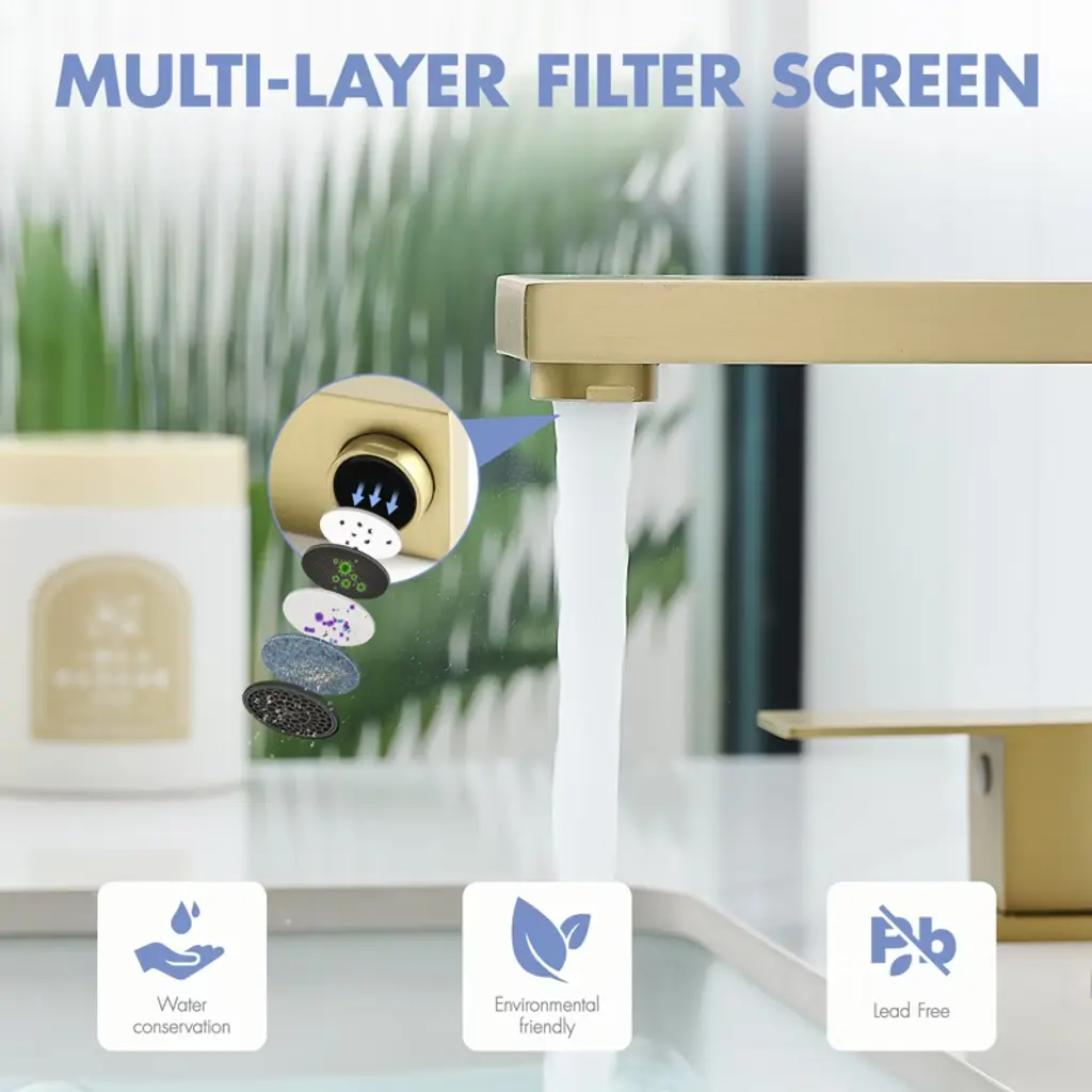 Brushed Nickel Waterfall Faucet With Pop-up Drain
