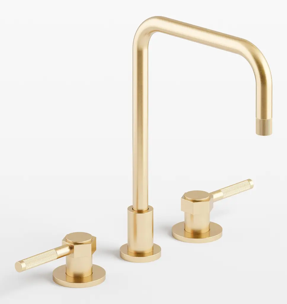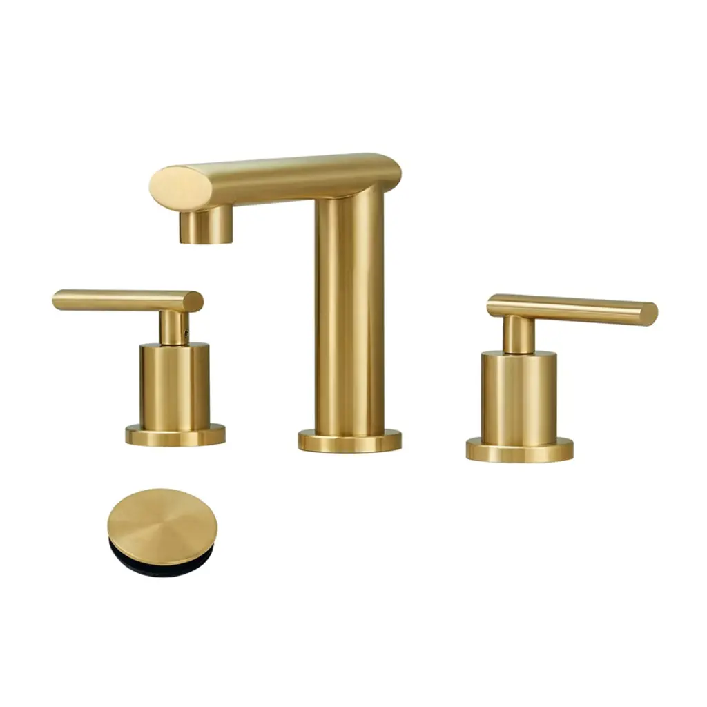Modern brushed nickel waterfall faucet with single handle and pop-up drain for contemporary bathrooms.