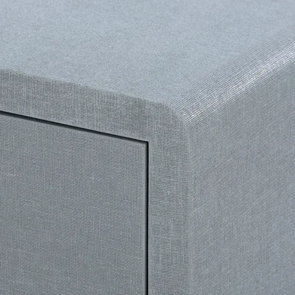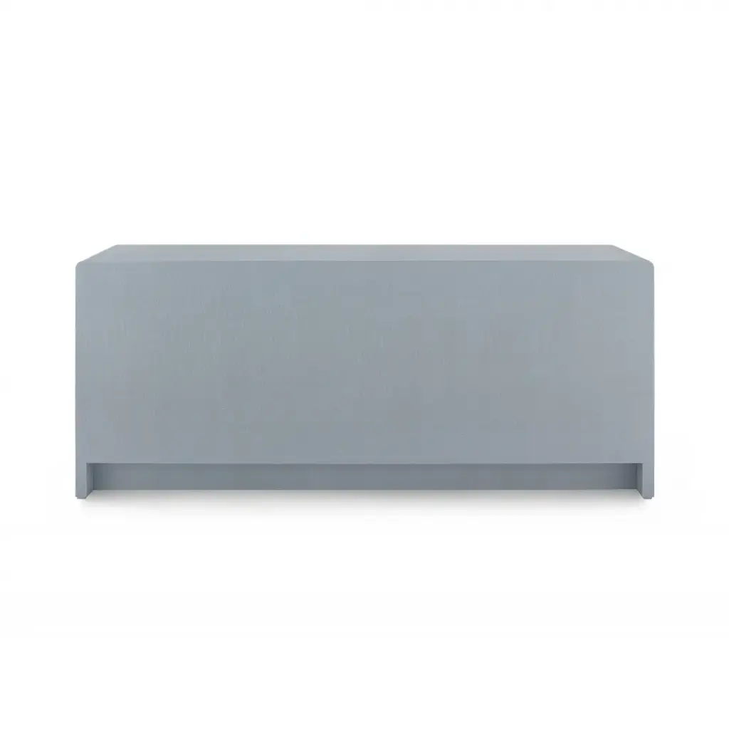 Quiet sophistication is found in the soft curves and classic silhouette of our Bryant Collection. Nevertheless, the Bryant Extra Wide Large 6-Drawer is full of little details which set it apart. Six drawers seamlessly stack together atop an inset base, producing a subtle play on form, while antique brass accents evoke a tasteful sense of luxury. The piece is executed in lacquered linen with a gray, slightly textured finish, making it a rich and uniquely versatile piece fit for almost any decor scheme.