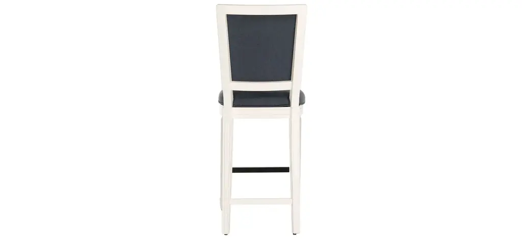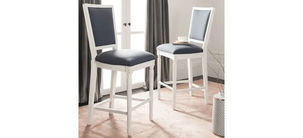 Entertain in style with this Buchanan Bar Stool. Designed to bring French charm to the table, Buchanan's navy linen is paired with finely carved distressed white wood. Sold in sets of two.