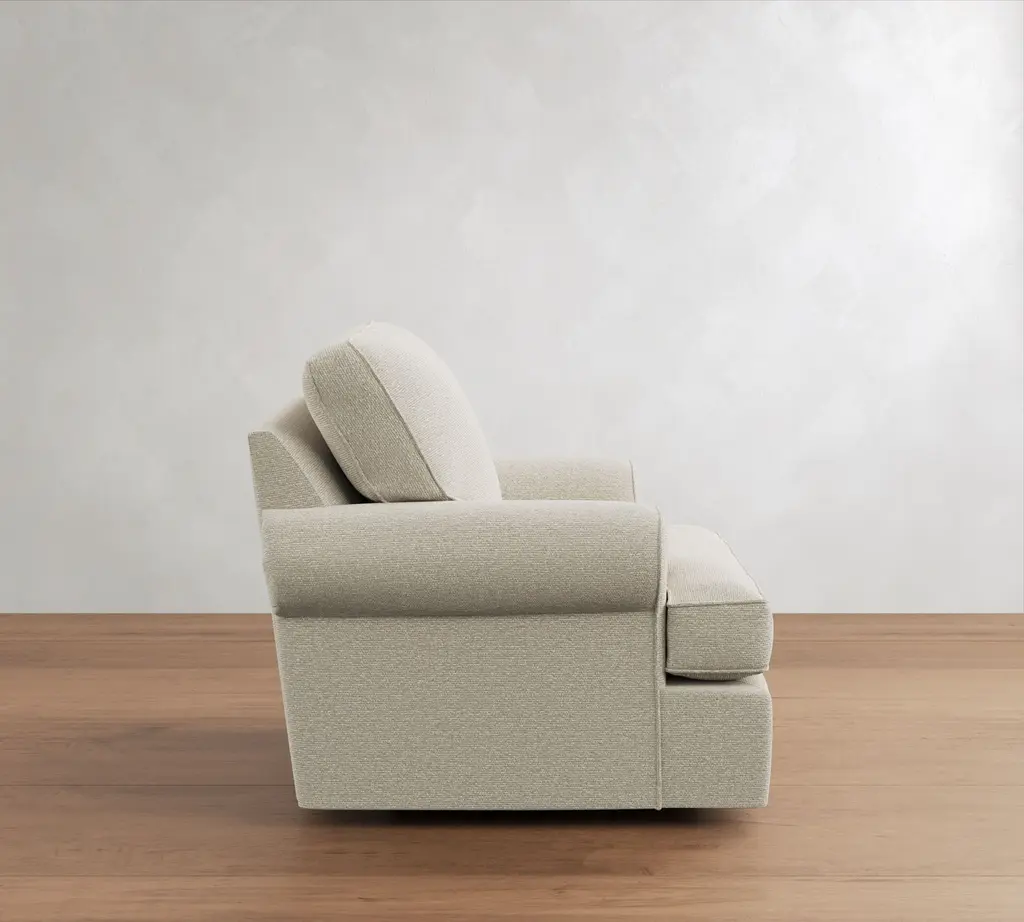 A compact profile makes our Buchanan Collection ideal for smaller spaces. Our swivel armchair has an elegant, classic style. Built for exceptional comfort with meticulous attention to quality and detail, it has generous roll arms and soft cushions that invite hours of relaxation.