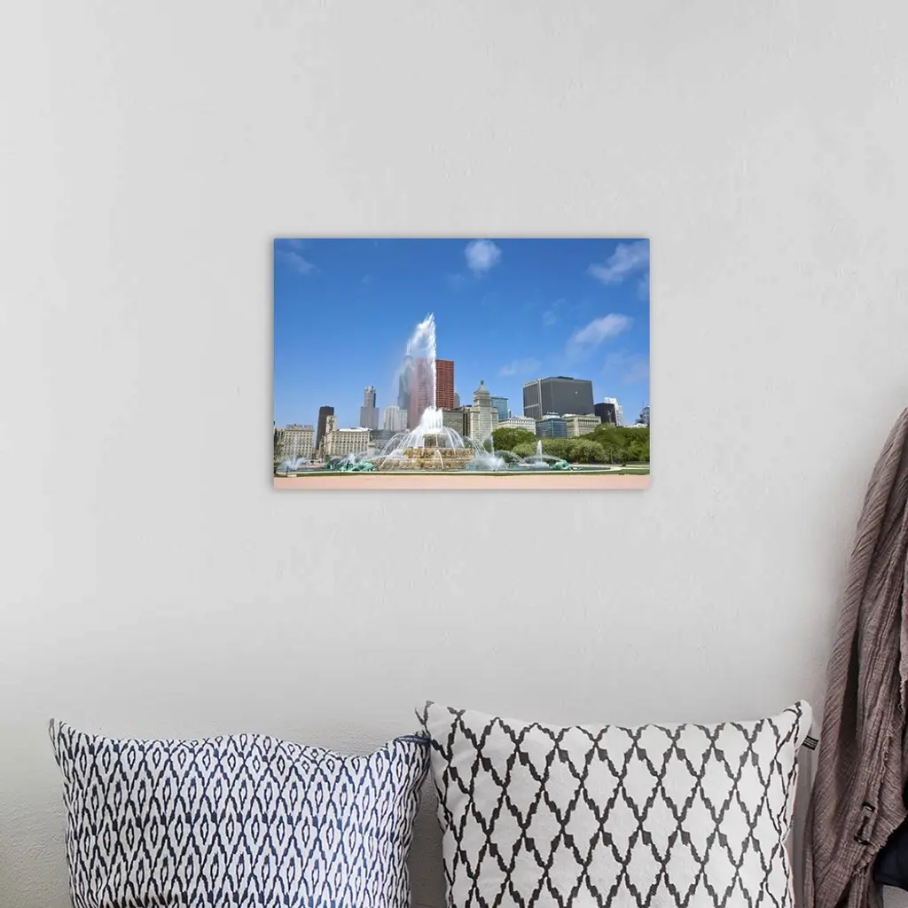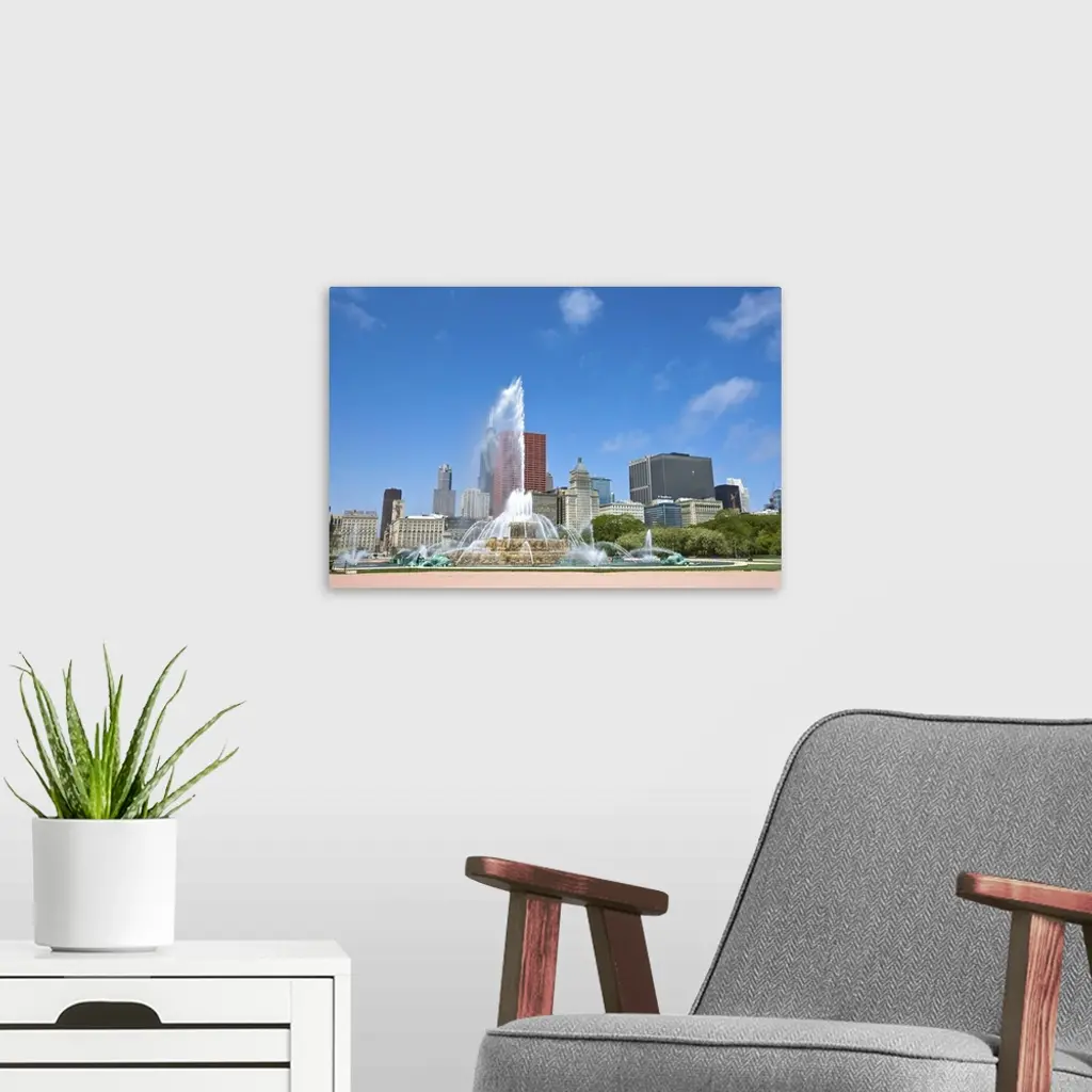 Buckingham Fountain in Grant Park with skyline beyond, Chicago, Illinois, USA wall art for home and office decor. Discover canvas art prints, photos, mural, big canvas art and framed wall art in GreatBigCanvas.com's varied collections.