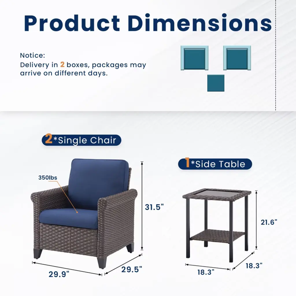 Buenhomino Chic 3-piece Outdoor Set – 2 Single Chairs & Table, Handwoven Wicker, Steel Frame, Weather-resistant Cushions For Patio & Garden