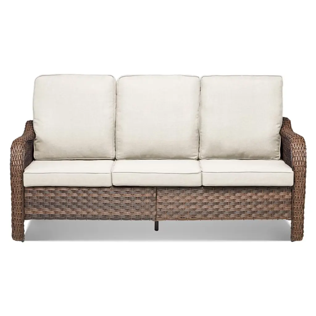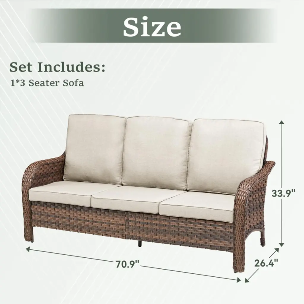 Elevate your outdoor relaxation with the Buenhomino 3-Seater Sofa. Crafted from all-weather PE rattan and rust-resistant steel, it's built to last. Sink into deep seating supported by plush, 3.3" thick cushions with premium Olefin fabric that resists fading and moisture. The high back and wide arms provide unparalleled comfort, making it the perfect centerpiece for your patio, garden, or deck.
