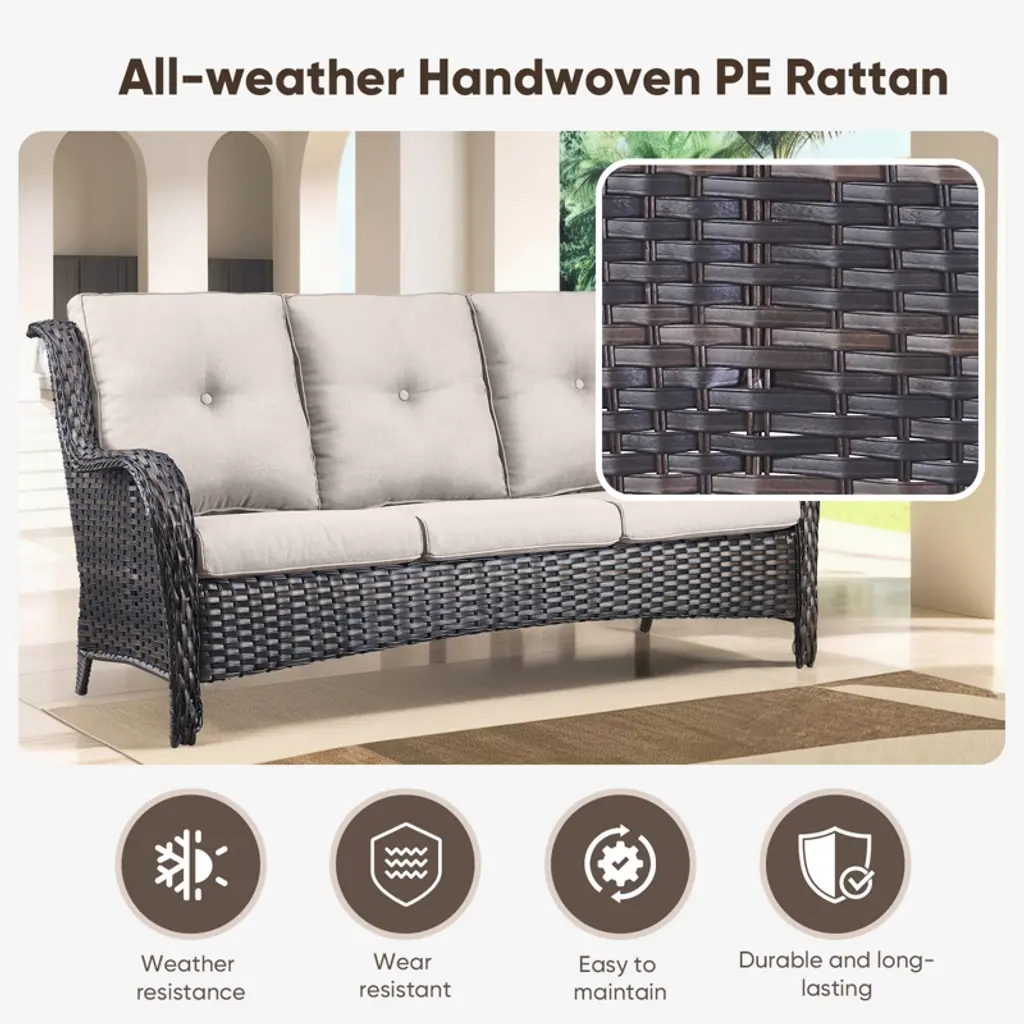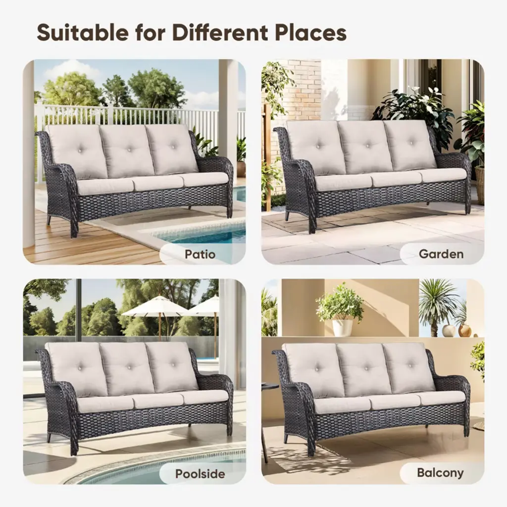Upgrade your outdoor space with the Buenhomino 3-Seater Wicker Sofa! Designed for durability & comfort, this all-weather patio couch features a sturdy metal frame, handwoven PE rattan, and plush waterproof cushions. Perfect for gardens, balconies, or poolside lounging—easy to assemble & built to last!