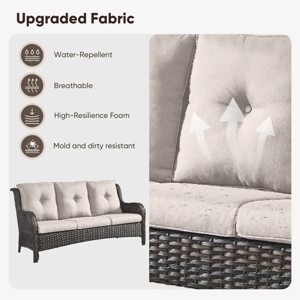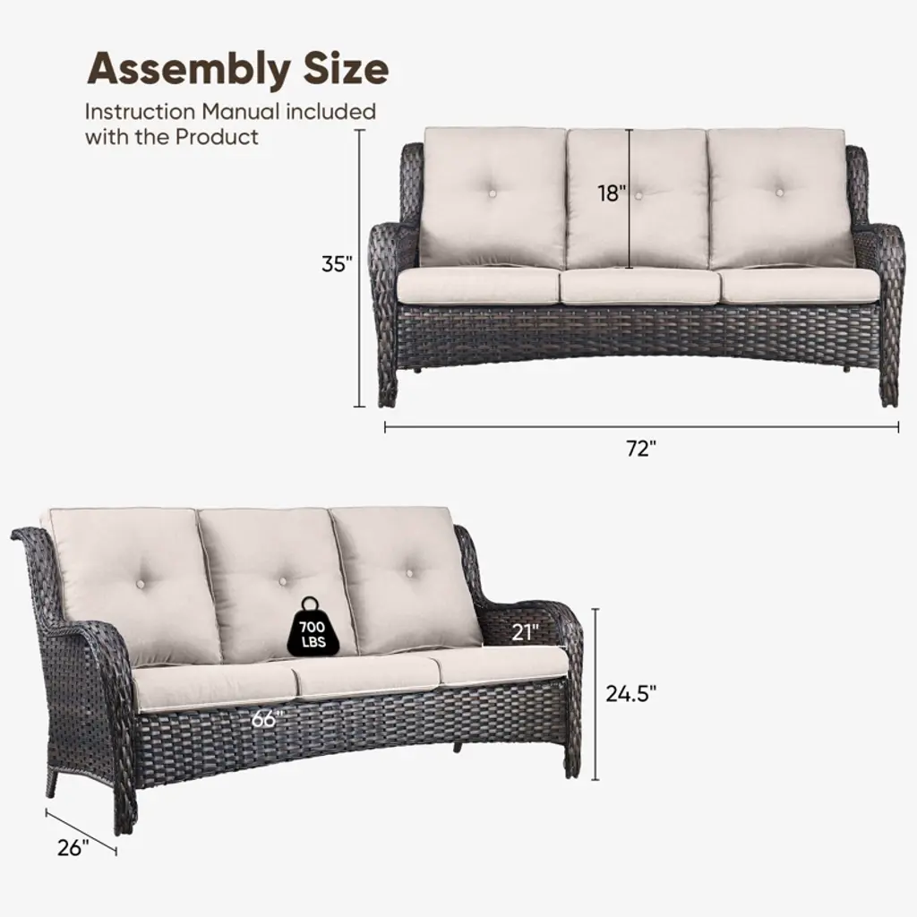 Buenhomino Outdoor Patio Couch Wicker Sofa - 3 Seater Rattan Sofa For Outside Patio Garden With Deep Seating And Olefin Cushions