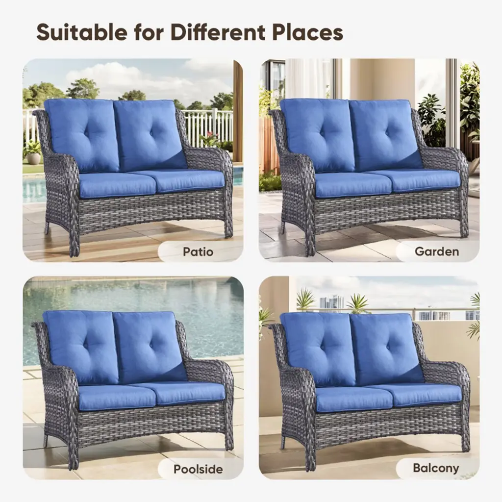 Upgrade your outdoor space with the Buenhomino Patio Wicker Loveseat—a stylish and durable 2-seater sofa designed for comfort and longevity. Featuring UV-resistant PE rattan, water-resistant cushions, and ergonomic support, this all-weather patio rattan loveseat is perfect for gardens, balconies, or poolside relaxation. Easy to clean and built to last!