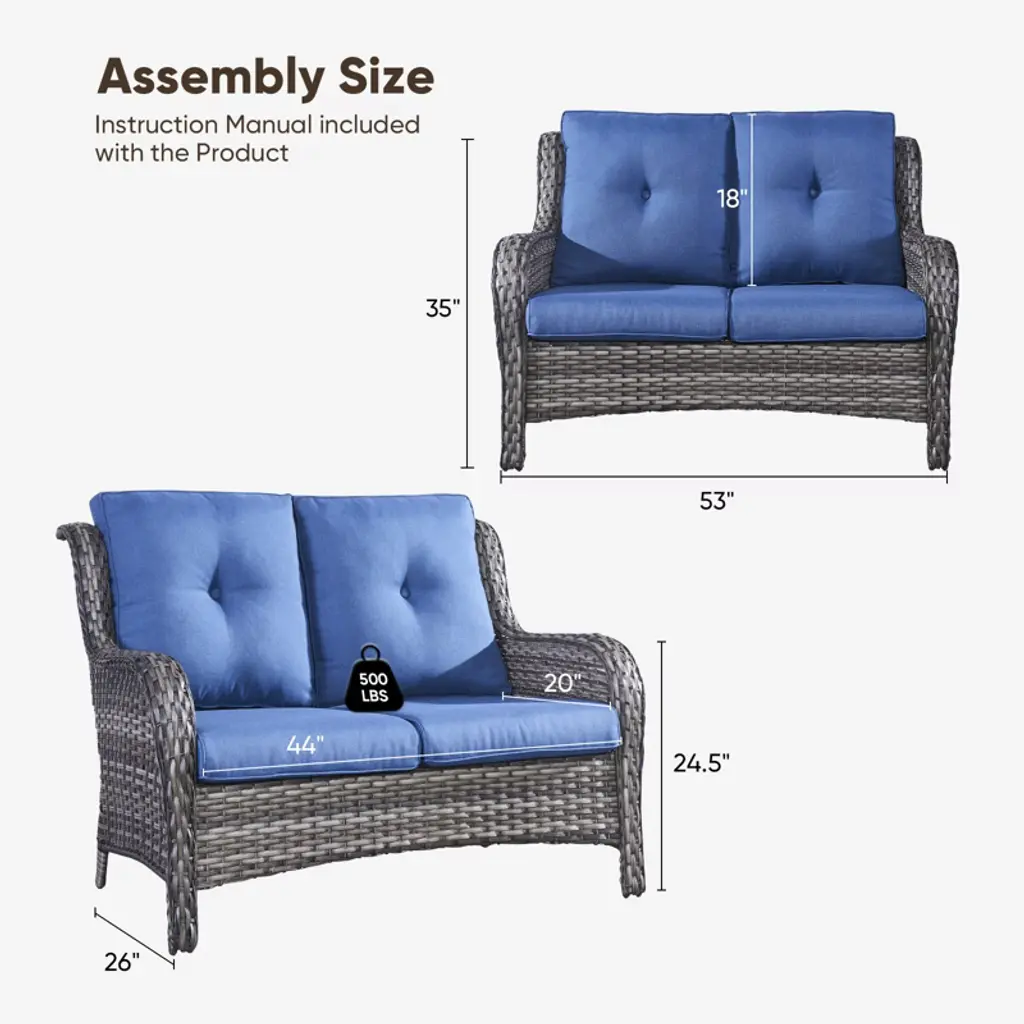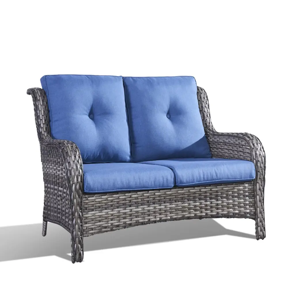 Buenhomino Outdoor Patio Couch Wicker Sofa Loveseat- 2 Seater Rattan Sofa For Outside Patio Garden With Deep Seating And Olefin Cushions