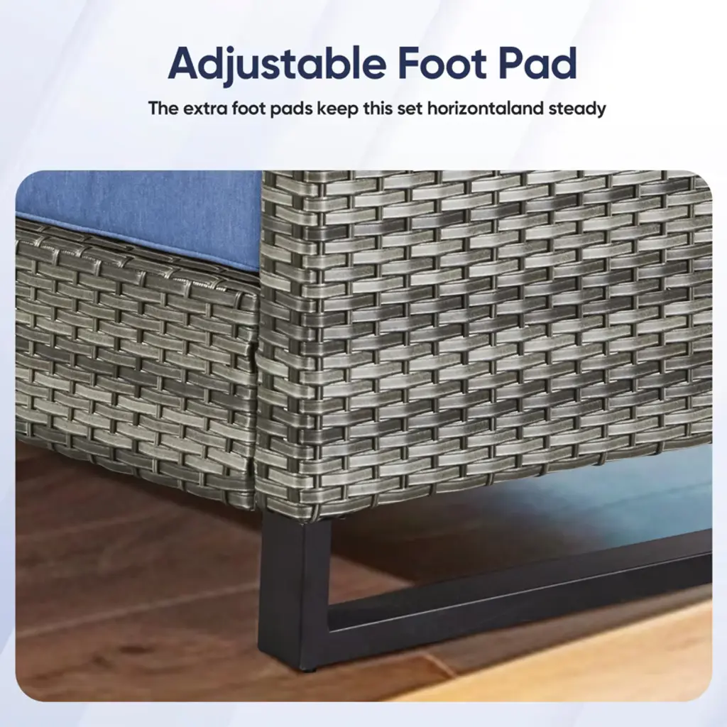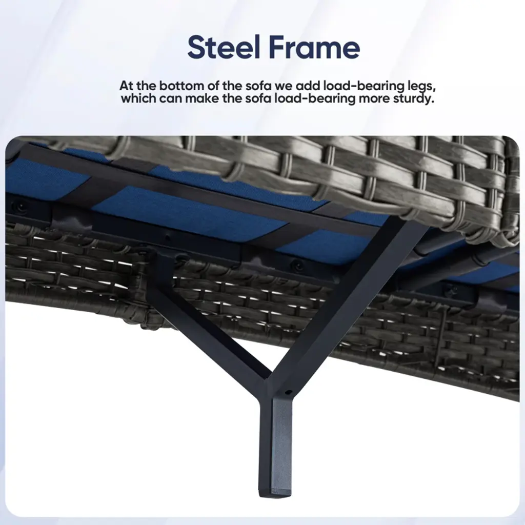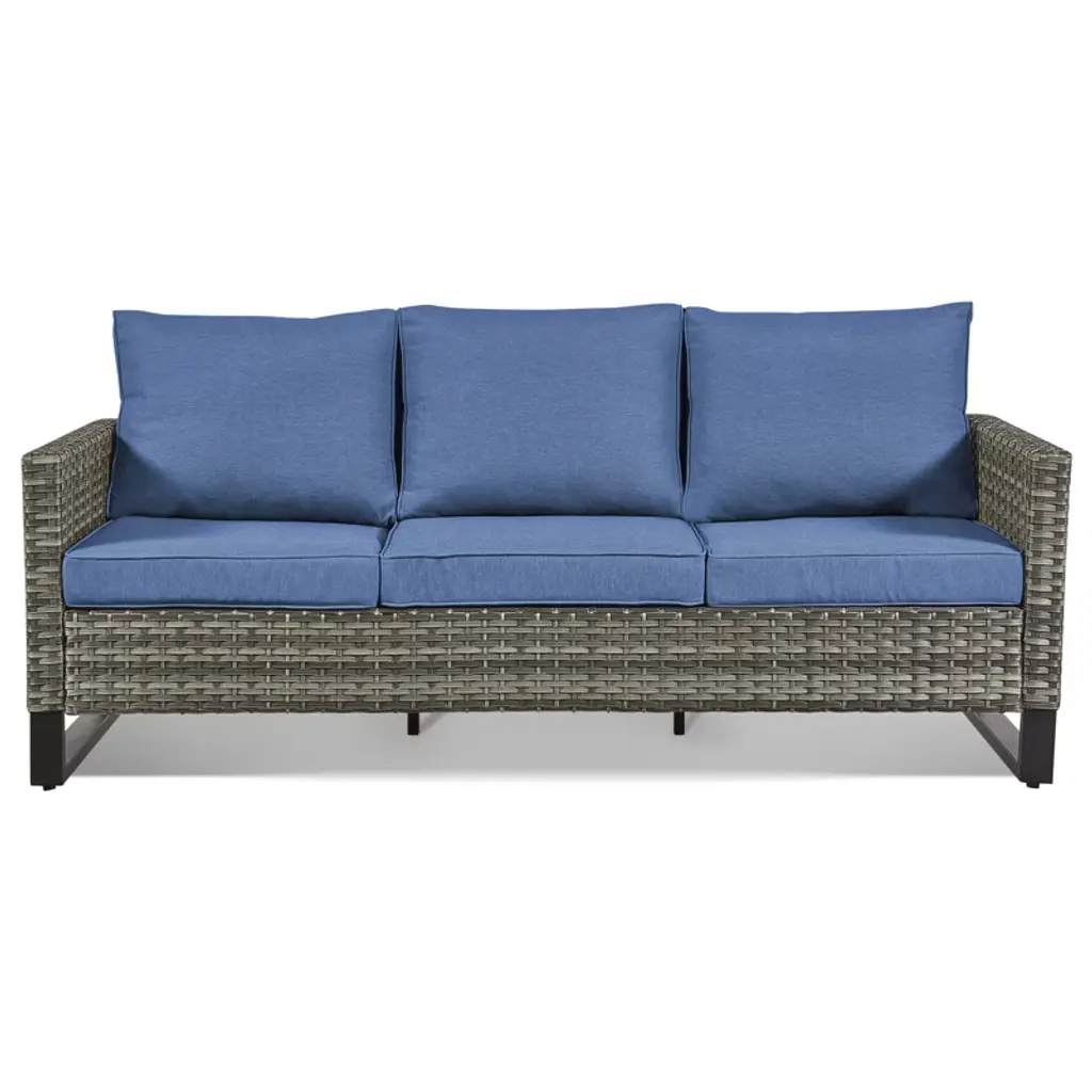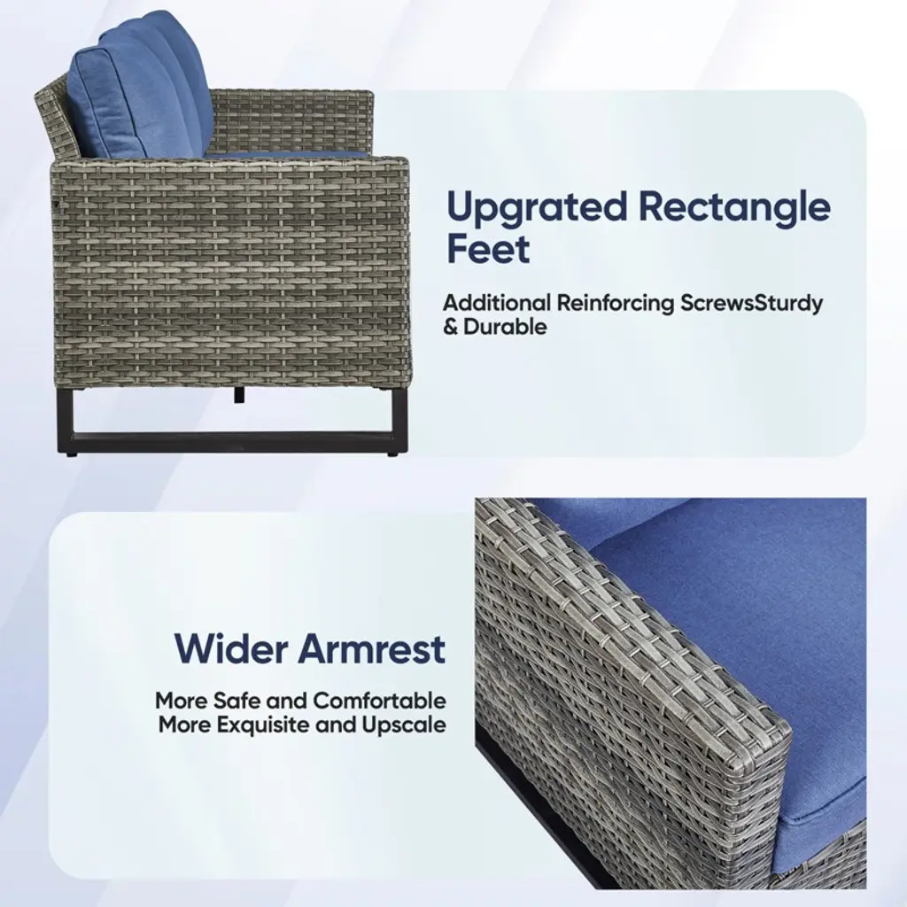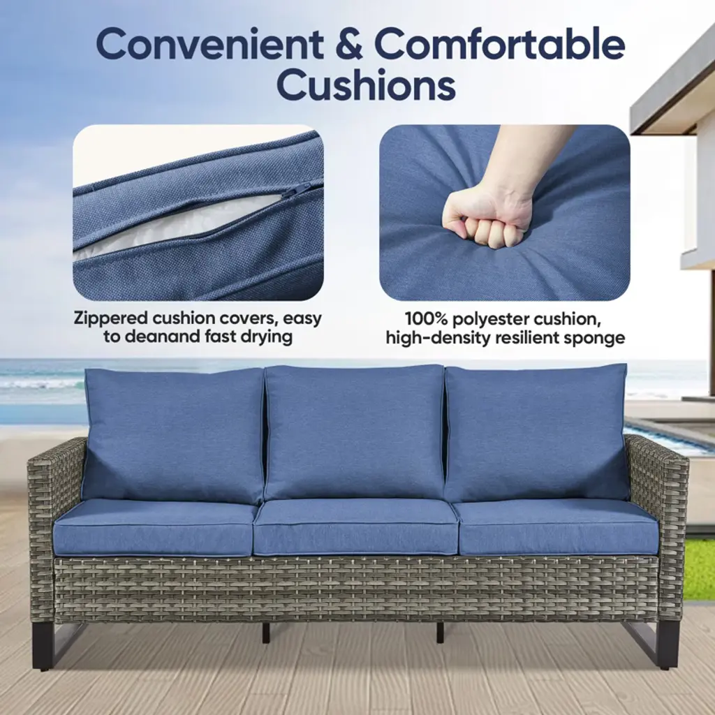 Buenhomino Outdoor Patio Furniture - Wicker Sofa With Removable Cushion, 3 Seater Rattan Couch With Deep Seat For Balcony Deck Backyard, Blue/gray