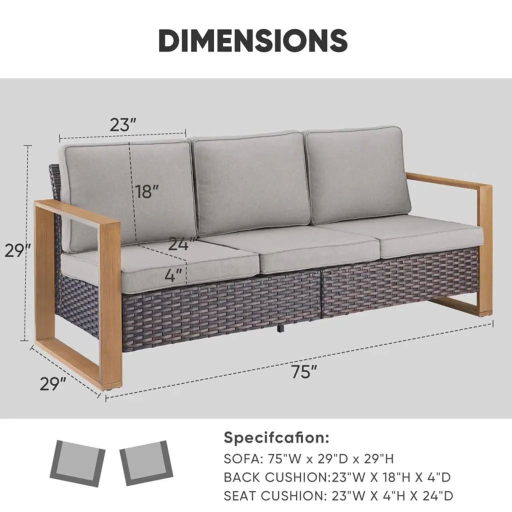 Buenhomino Patio Couch With High Back, 75" 3 Seats Outdoor Sofa, All Weather Pe Wicker Couch With 4-inch Cushion For Porch, Backyard, Balcony, Deck