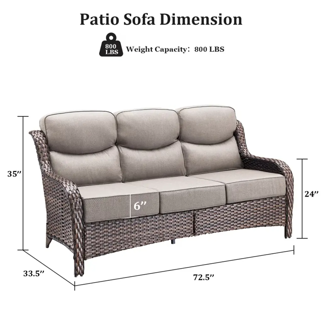 Upgrade your outdoor space with the Buenhomino 3-Seat Wicker Patio Sofa! Designed for ultimate comfort, this high-back couch features 6-inch thick cushions with high-density foam and all-weather PE rattan wicker for durability. The rust-resistant steel frame supports up to 800 lbs, making it perfect for gardens, patios, or sunrooms. Fade-resistant, waterproof, and easy to assemble!