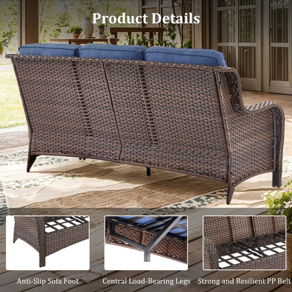 Upgrade your outdoor space with the Buenhomino 3-Seat Wicker Patio Sofa! Designed for ultimate comfort, this high-back couch features 6-inch thick cushions with high-density foam and all-weather PE rattan wicker for durability. The rust-resistant steel frame supports up to 800 lbs, making it perfect for gardens, patios, or sunrooms. Fade-resistant, waterproof, and easy to assemble!
