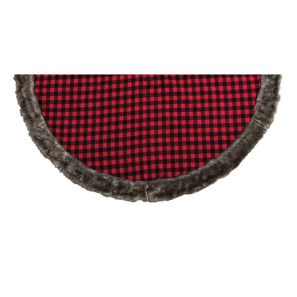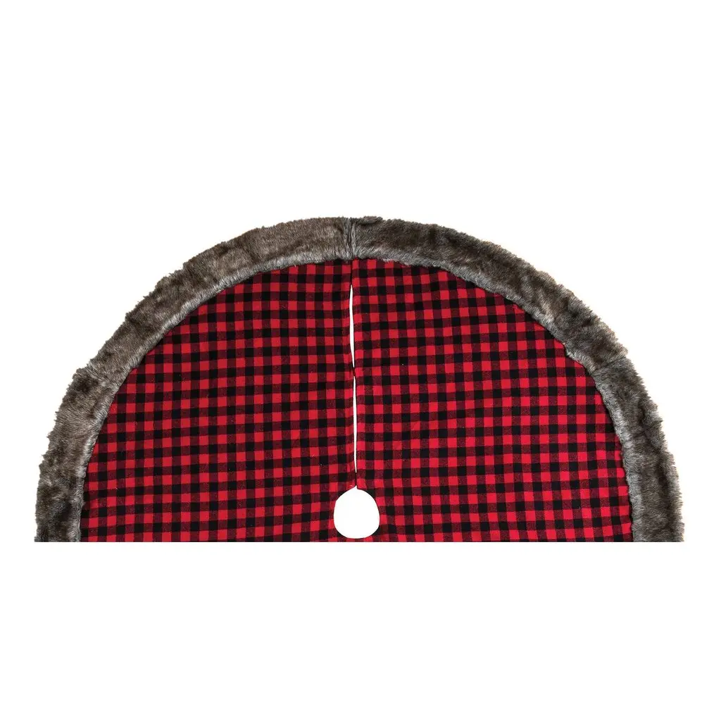 Get cozy this holiday season with our Buffalo Check Tree Skirt. This red and black checkered foundation is lined with soft faux fur, bringing rustic elements together to create a lodge inspired feel to the holiday season. Complete your look with the Buffalo Check stocking and embroidered pillow.Hand crafted buffalo check rustic style tree skirt with faux fur borderCrafted of polyesterA Velcro closure allows you to secure the tree skirt in place underneath the Christmas tree