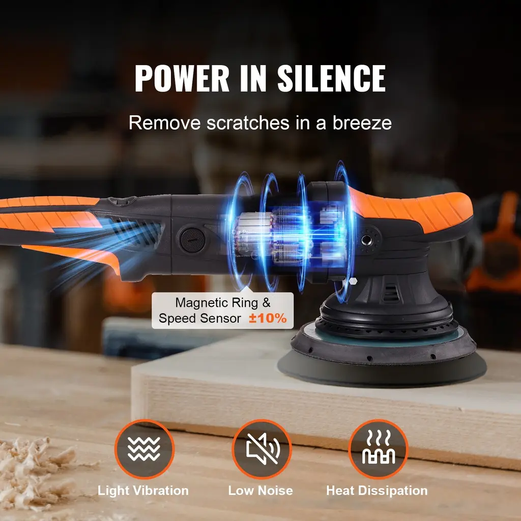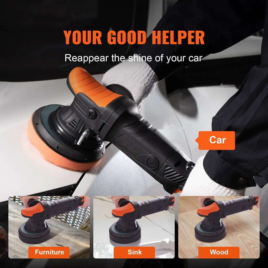 Powerful Brushless Motor: 6-inch cordless buffer polisher adopts high-power brushless motor, delivering up to 19530RPM motor speed, longer service life, and lower noise. It ensures greater power and torque during car polishing tasks, resulting in easier detailing jobs while achieving a swirl-free and scratch-free finish. 6-Speed for Precise Polishing: With 6 available speeds ranging from 2300 to 3800 RPM/1900 to 4600RPM, our car buffing polishing machine allows you to tailor your polishing experience to your needs. Whether you're waxing and buffing at low speeds, polishing and cleaning at medium speeds, or tackling stubborn defects and oxidation at high speeds, this random orbital polisher has you covered. More Pads, More Applications: Our dual action polisher waxer comes equipped with 3 wave sponge pads, 1 sponge flat pad, and 1 wool pad, perfect for curved surface polishing and detailing tasks. Compared to traditional foam pads, 's wavy foam pads adapt better to various curved surfaces, delivering more precise polishing results every time. No Cords, No Limits: Say goodbye to the hassle of cords with our 20V cordless polisher for car detailing. Work more efficiently around the house, in the garage, or on the job site without the trouble of dragging, yanking, and positioning cords. With 4.0Ah rechargeable battery and a battery charger included, embrace the convenience of wireless freedom. Versatile & Ready for Any Job: Transform your car's appearance with our brushless polisher buffer. this versatile tool is perfect for polishing paint, sanding, waxing, removing swirls and scratches, and more. Not limited to cars, our random orbital polisher buffer also works wonders on motorcycles, boats, furniture, ceramics, wood, and metal, delivering a flawless finish every time. Package Content 3 x Wave Sponge Pads 1 x Sponge Flat Pad 1 x Wool Pad 1 x Storage Bag 1 x S5 Hex Wrench 1 x 20V 4.0Ah Battery 1 x 4A Battery Charger (1 x DA Polisher 4 x Polishing Pad 1 x Wool Pad 1 x Towel 1 x Side Handle 1 x Bag) for 1900-4600RPM option