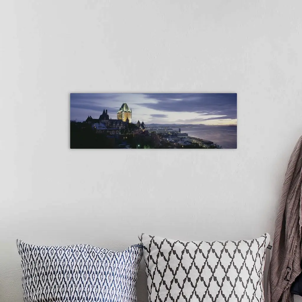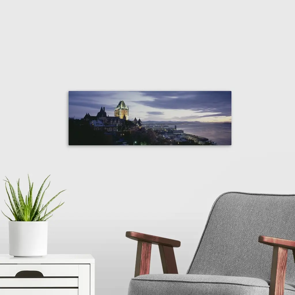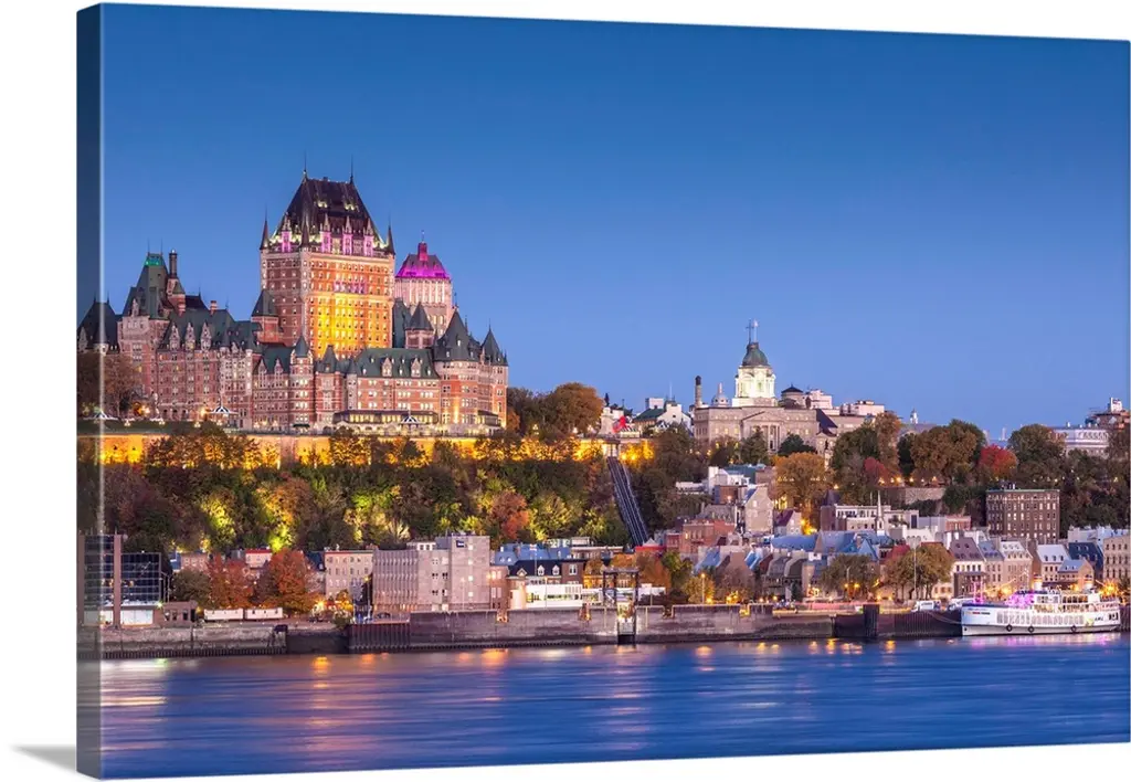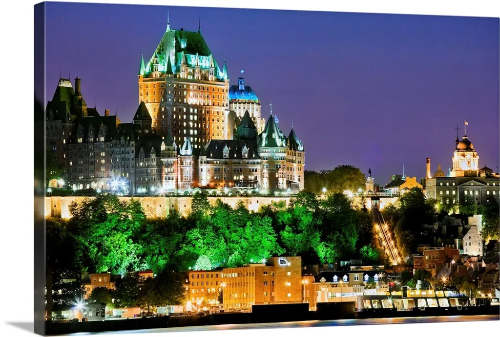 Building lit up at dusk, Chateau Frontenac, Quebec City, Quebec, Canada wall art for home and office decor. Discover canvas art prints, photos, mural, big canvas art and framed wall art in GreatBigCanvas.com's varied collections.