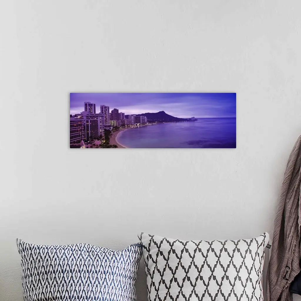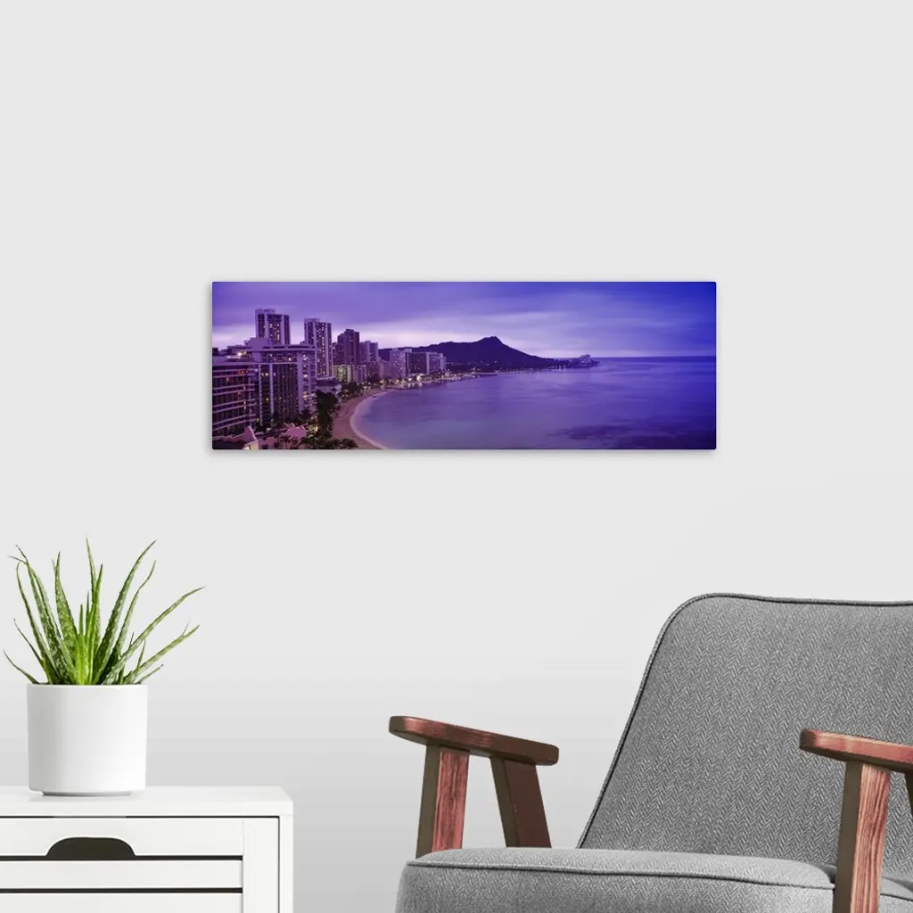 Buildings at the coastline with a volcanic mountain in the background, Diamond Head, Waikiki, Oahu, Honolulu, Hawaii wall art for home and office decor. Discover canvas art prints, photos, mural, big canvas art and framed wall art in GreatBigCanvas.com's varied collections.