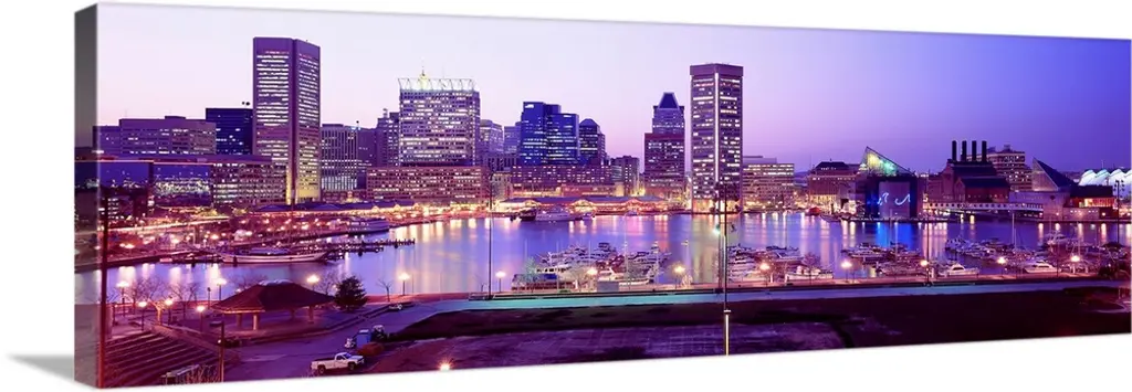 Buildings at the waterfront, Inner Harbor, Baltimore, Maryland wall art for home and office decor. Discover canvas art prints, photos, mural, big canvas art and framed wall art in GreatBigCanvas.com's varied collections.