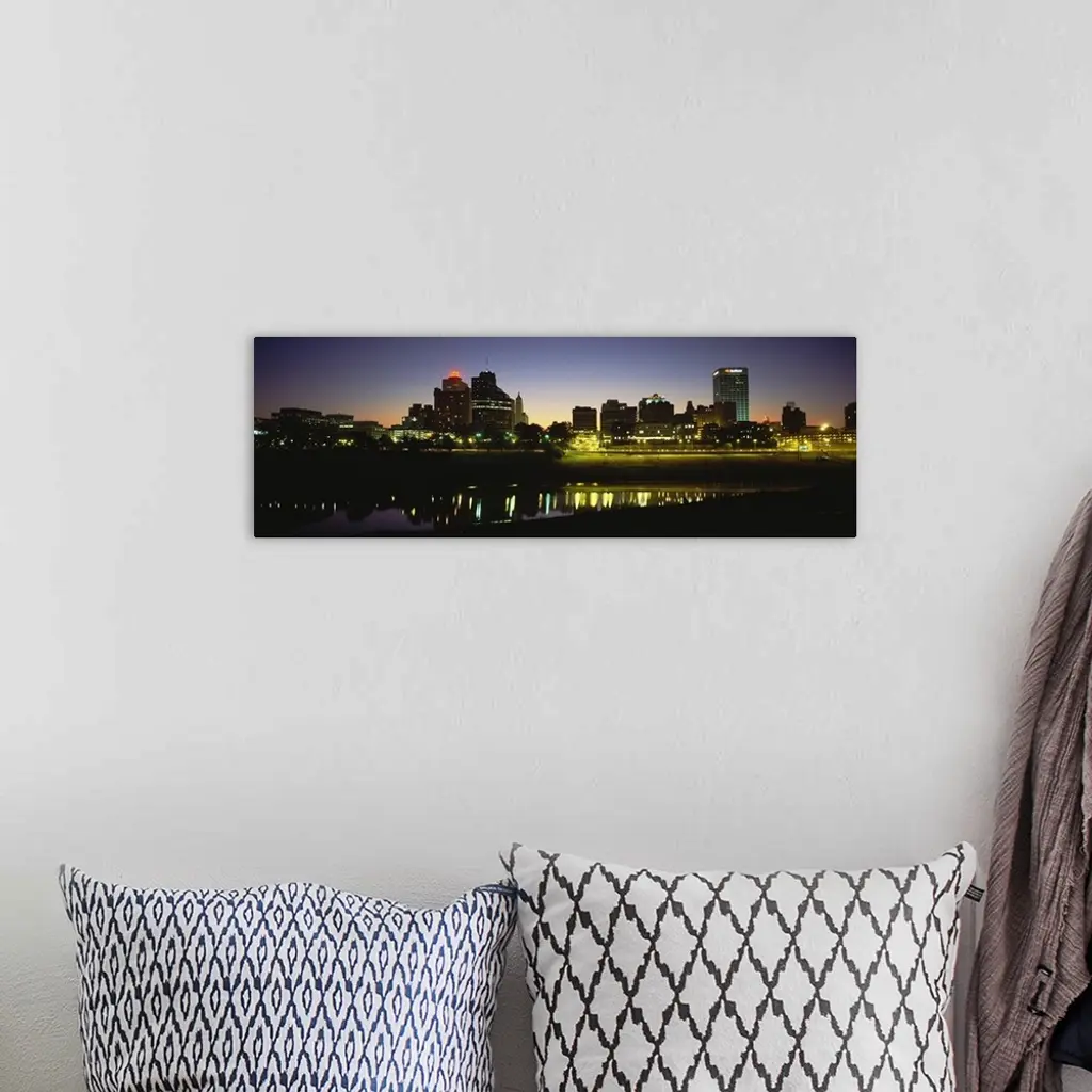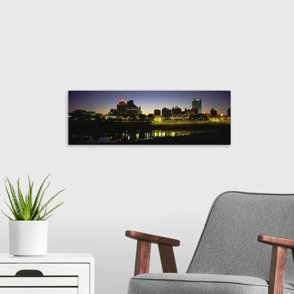 Buildings At The Waterfront Lit Up At Dawn, Memphis, Tennessee