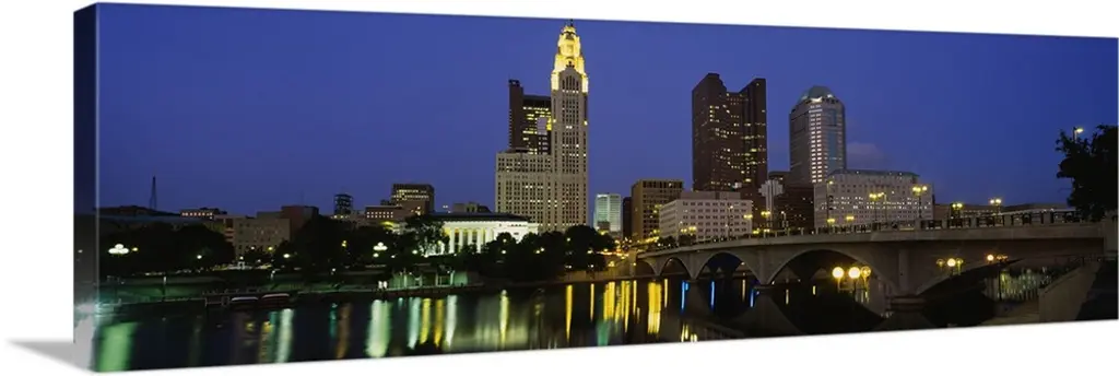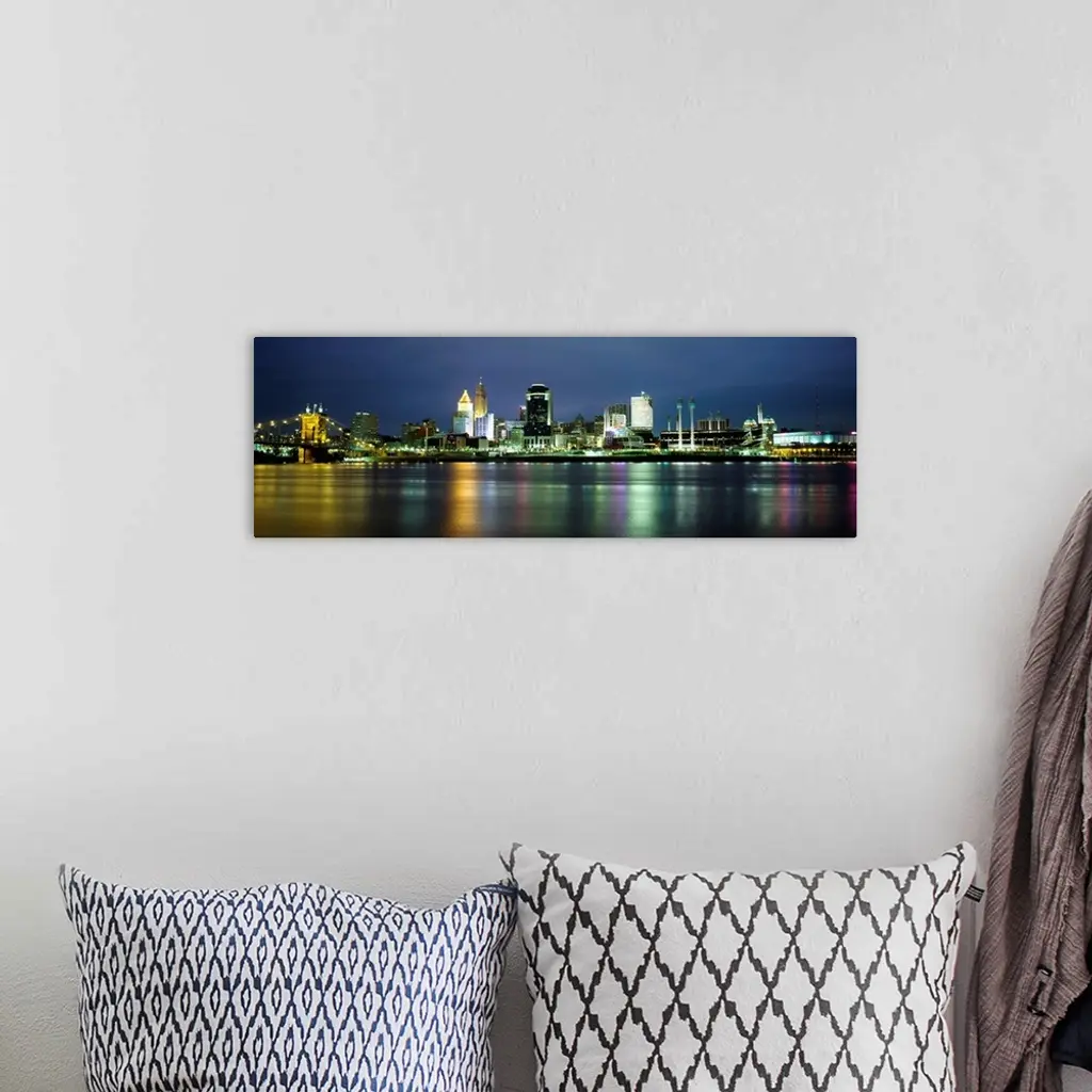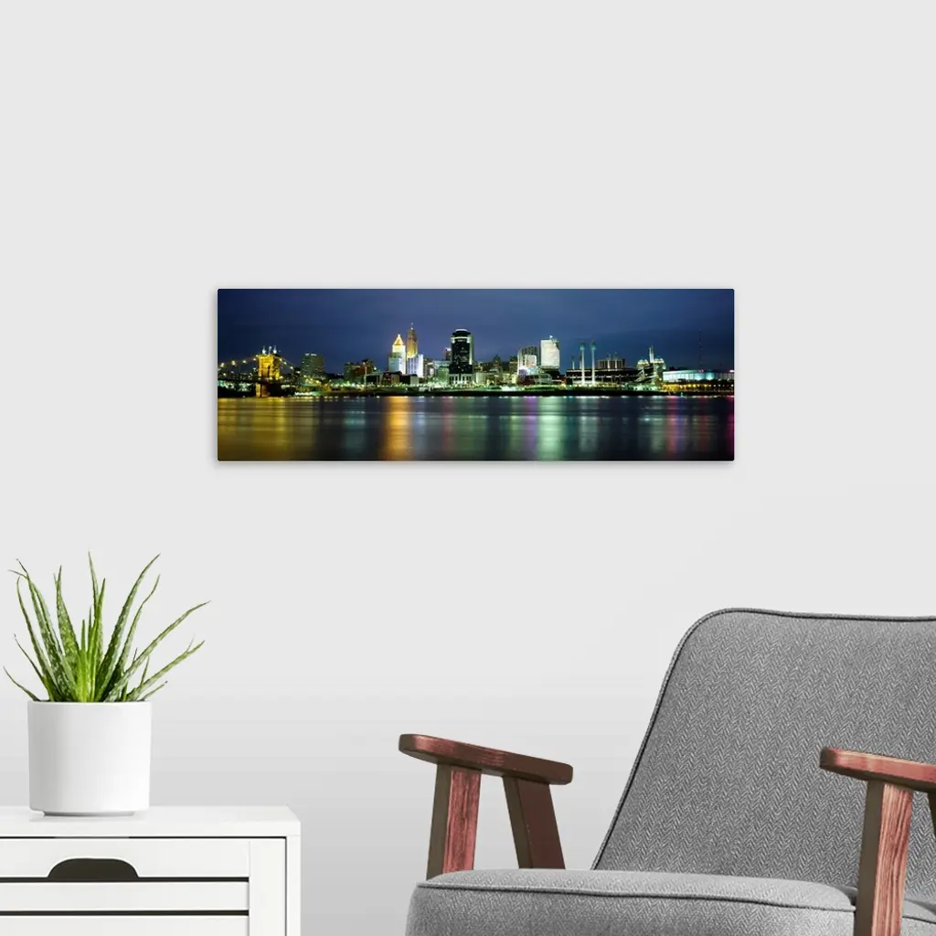 Buildings At The Waterfront Lit Up At Night, Ohio River, Cincinnati, Ohio
